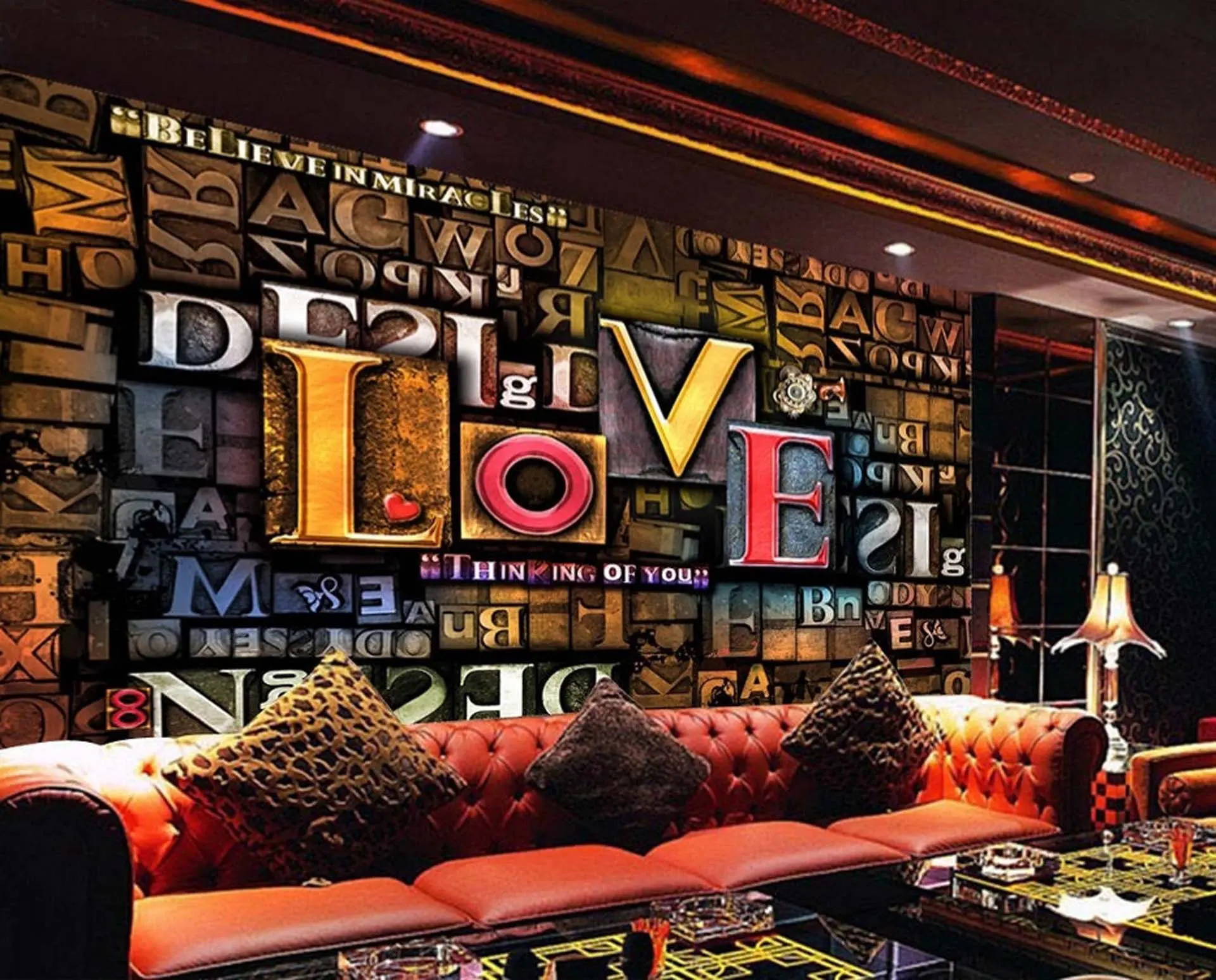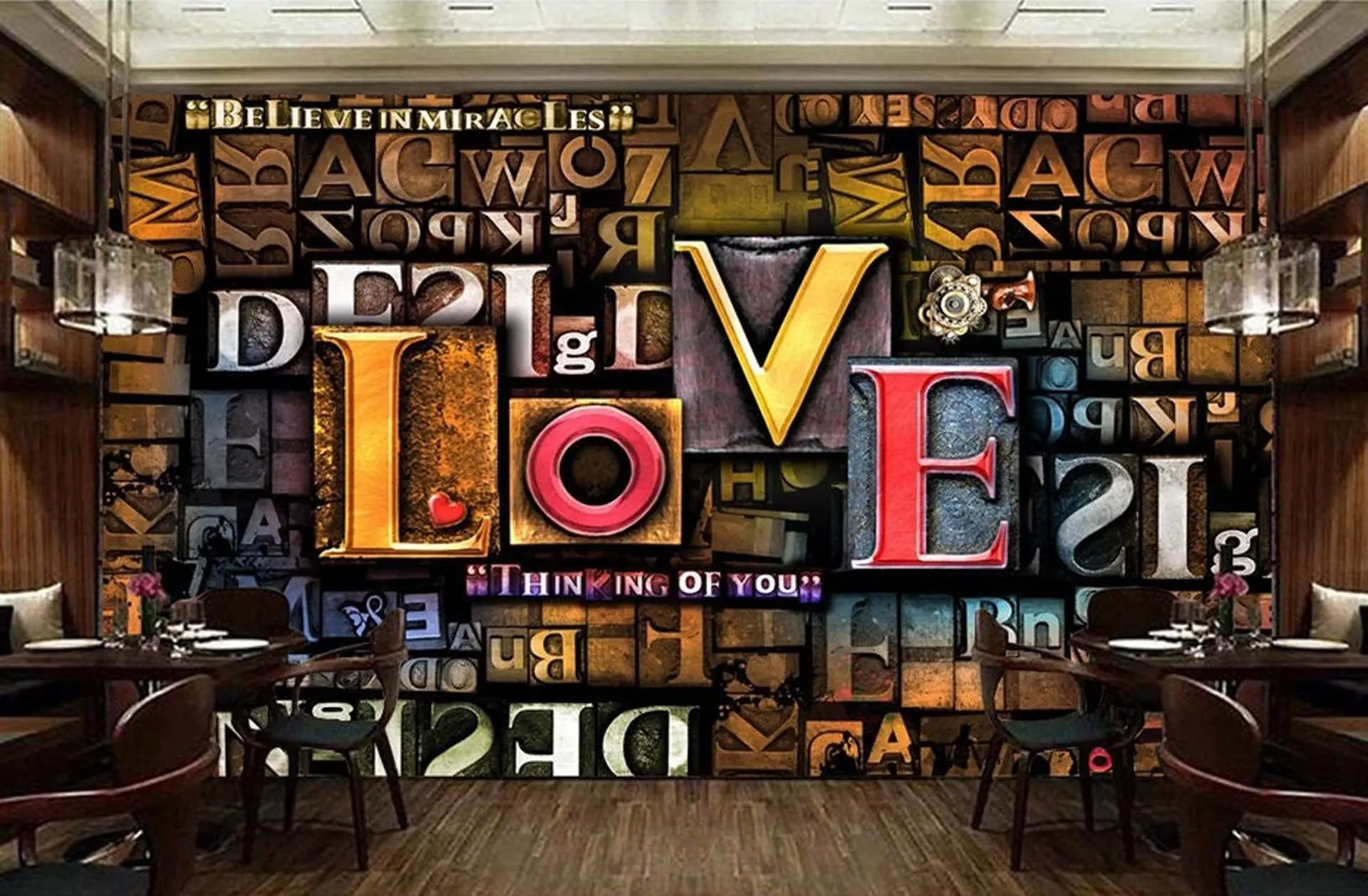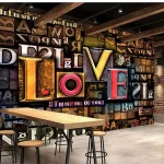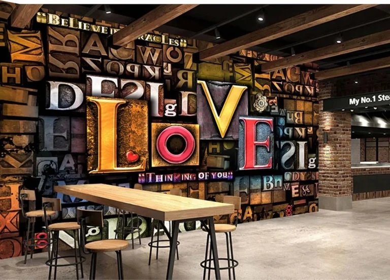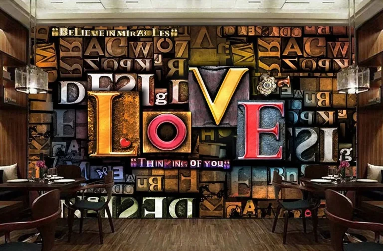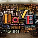3D Design Wallpaper with Distressed Letters of Various Sizes and Colors Highlighting the Word ‘LOVE