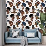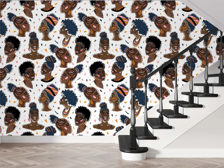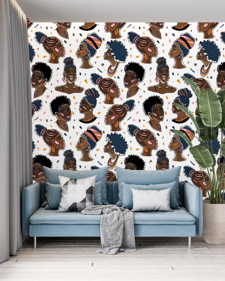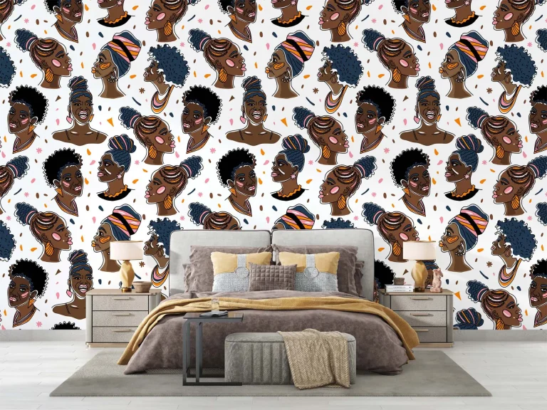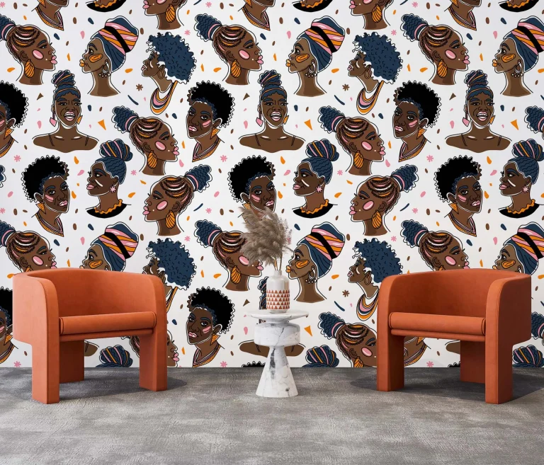 Abstract Female Busts with Various Hairstyles Wallpaper – Afro American Faces, Artistic Expression