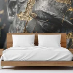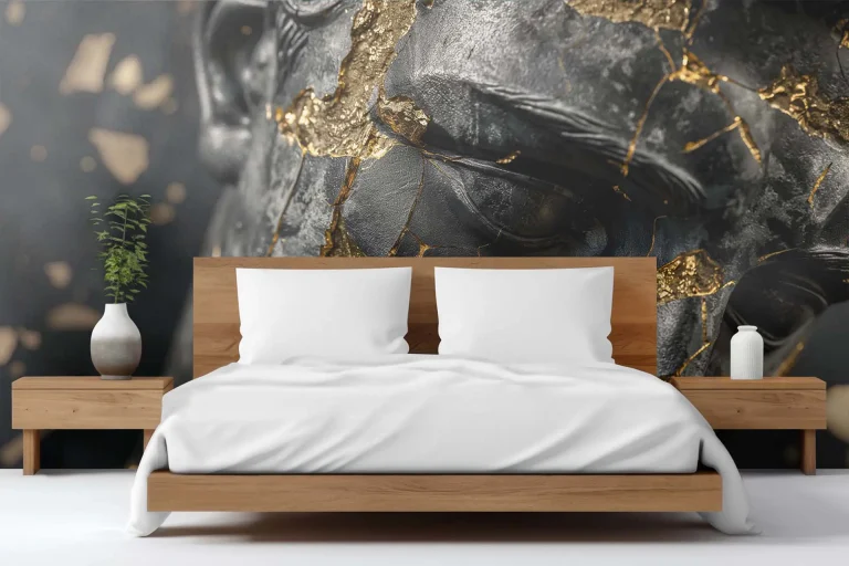 Artistic Cracked Black Statue with Gold Highlights Wallpaper – Modern and Sophisticated Design for Living Rooms or Offices