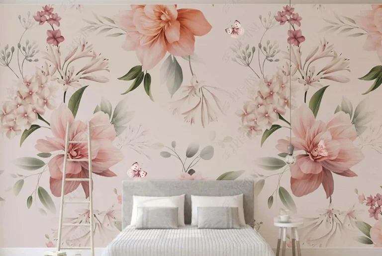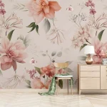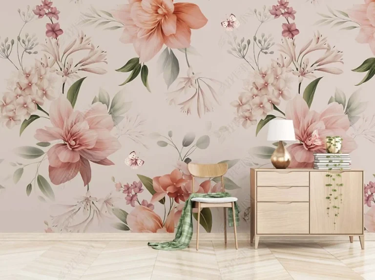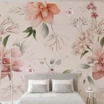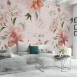 Artistic Light Pink Background with Pink Flowers Wallpaper – Warm Ambiance for Stylish Interiors