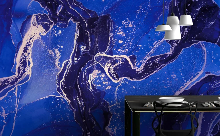 Artistic Silver Veined Blue Marble Pattern Wallpaper – Modern Abstract Look for Stylish Spaces