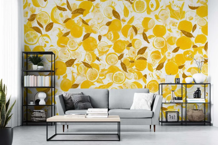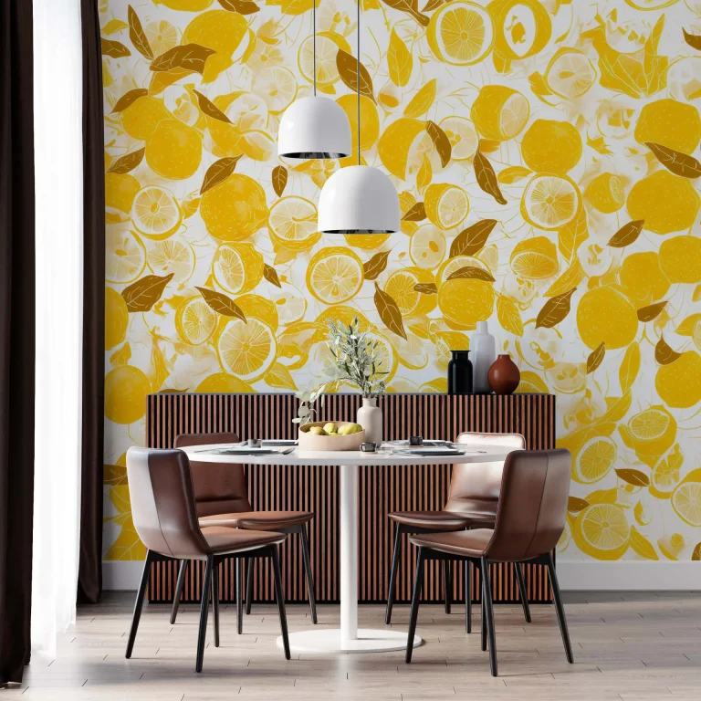 Bright Lemon-Themed Wallpaper – Fresh and Vibrant Design Perfect for Kitchens, Cafes, or Summer-Themed Spaces, Adding a Zesty Citrus Vibe