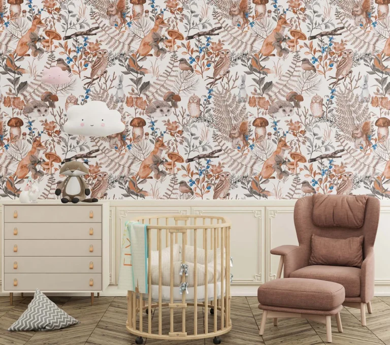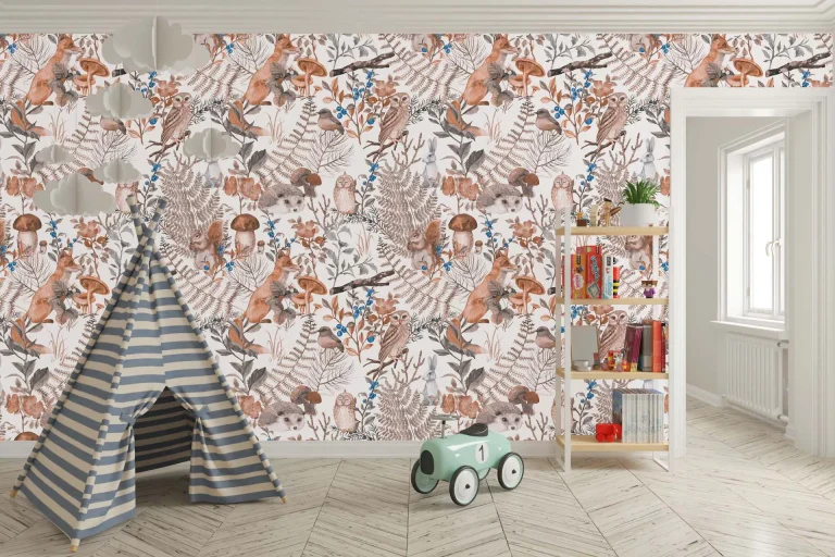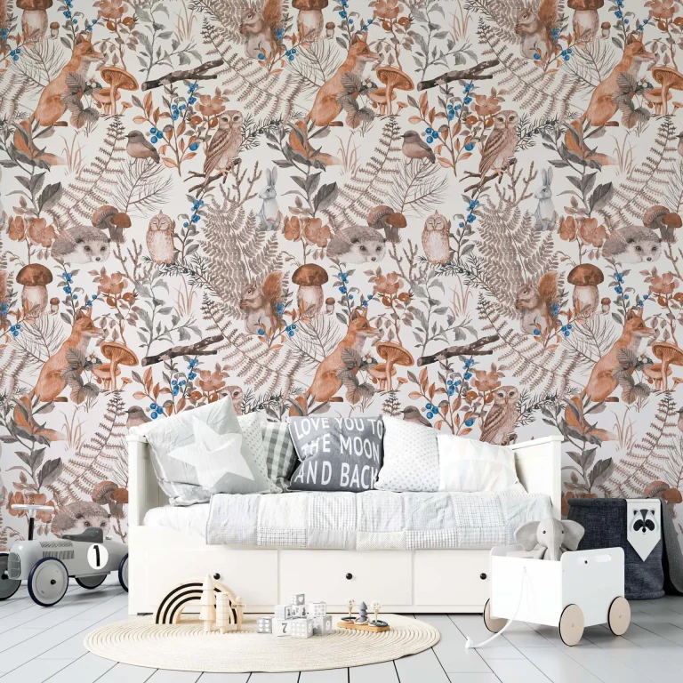 Brown Tones Forest Animals & Plants – Owl, Fox, Mole for Children’s Room & Nursery