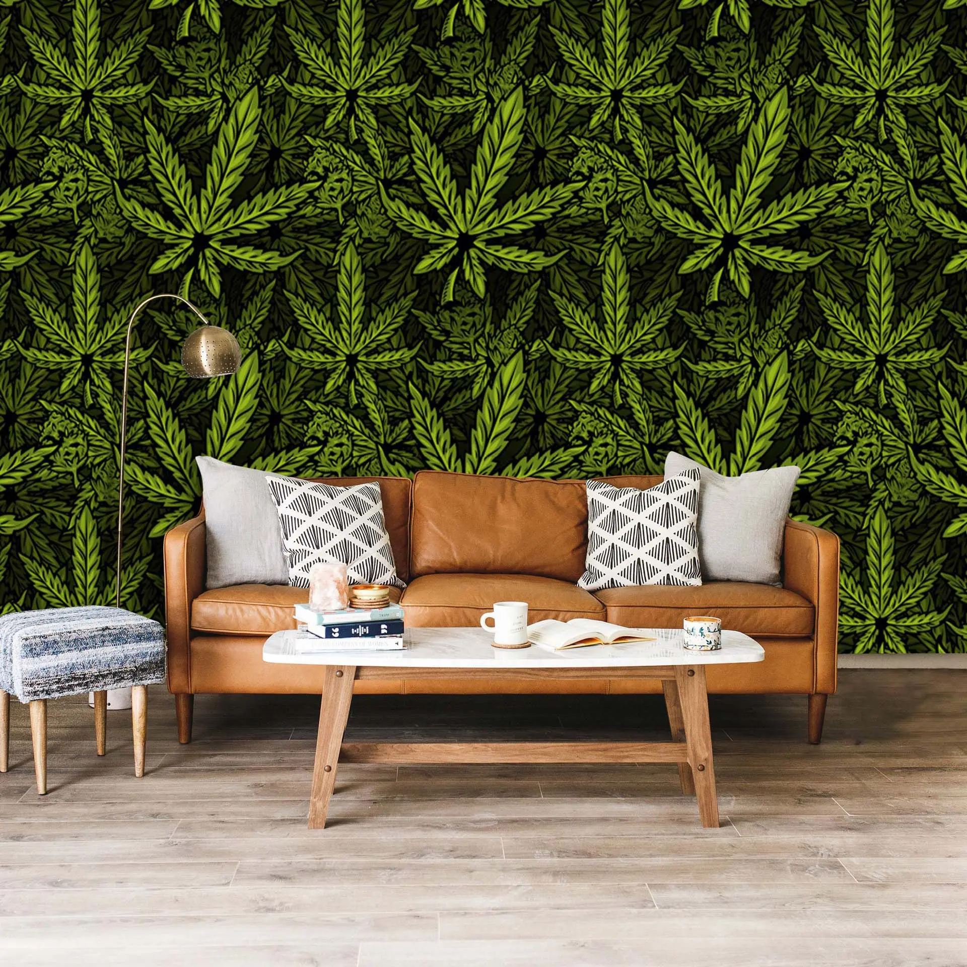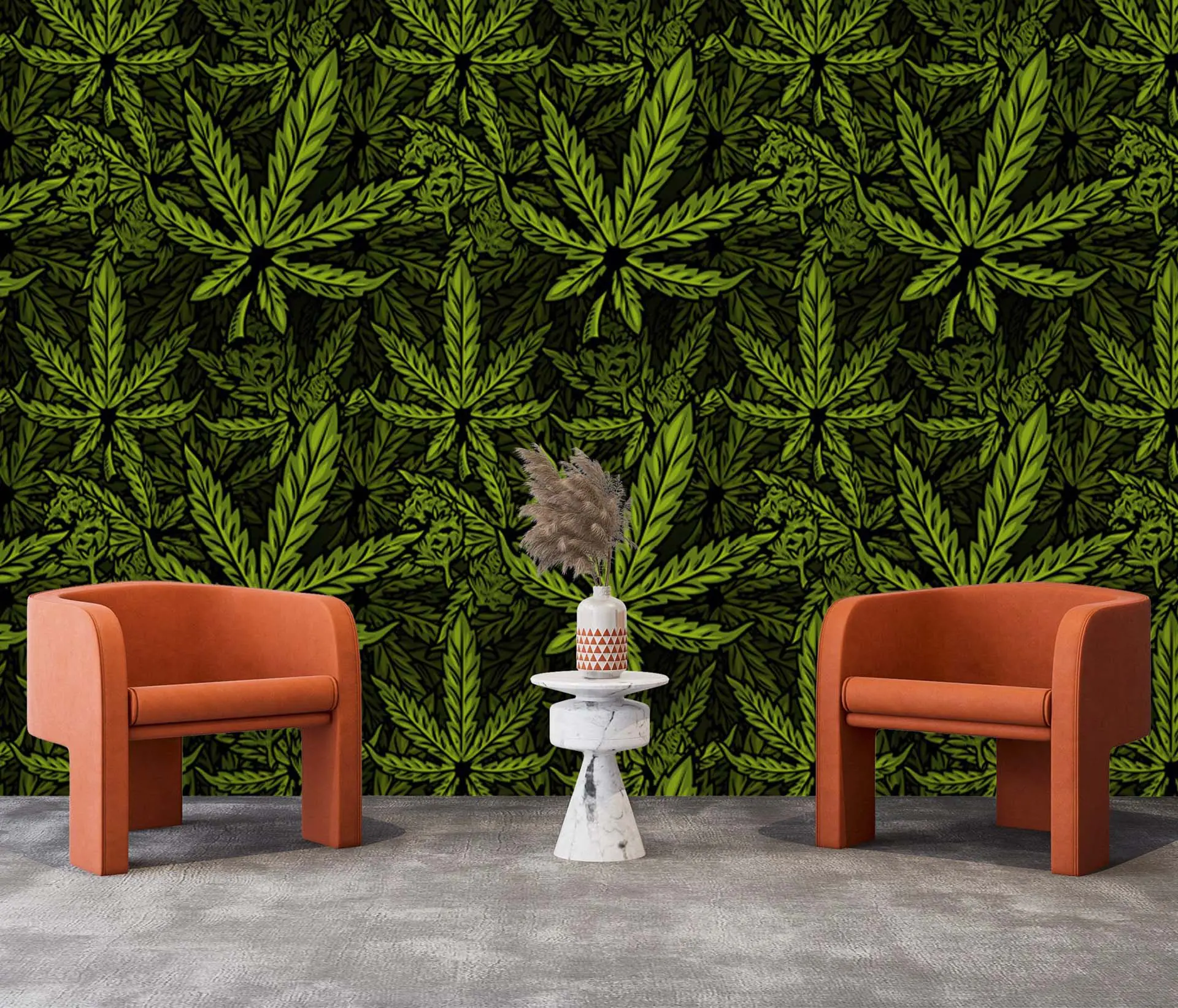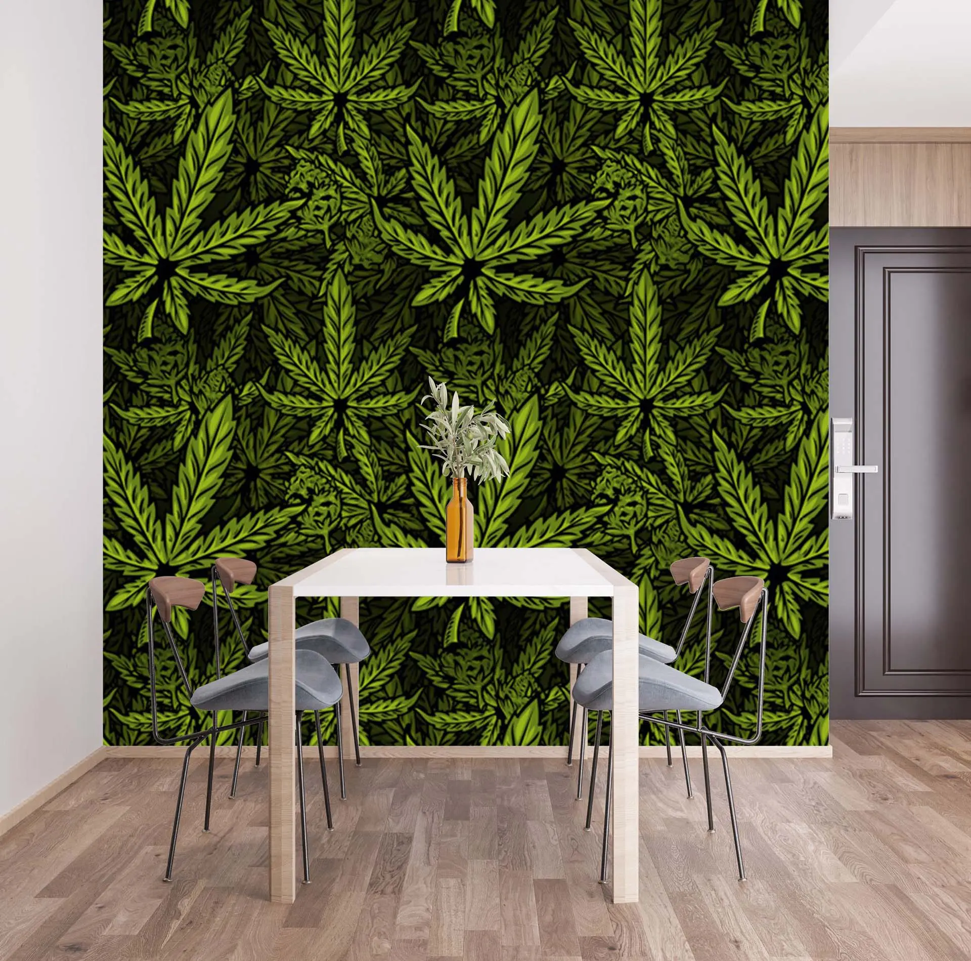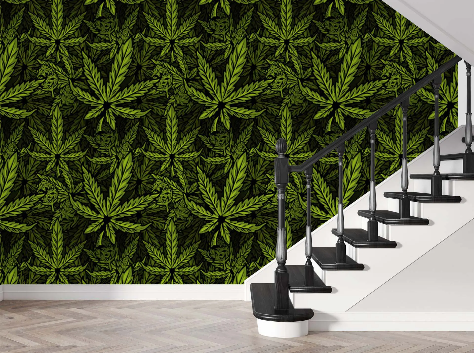 Cannabis Leaf Pattern Wallpaper – Botanical Weed Inspired Home Decor