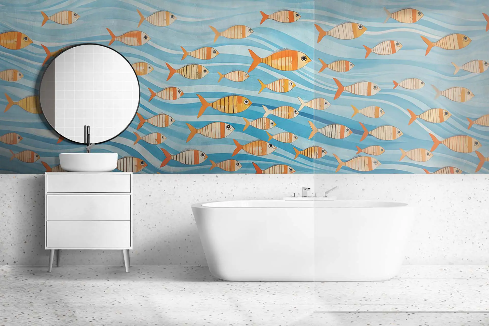 Colorful Fish School Wallpaper – Perfect for Adding a Fun and Playful Aquatic Vibe to Kids’ Rooms and Playrooms
