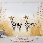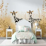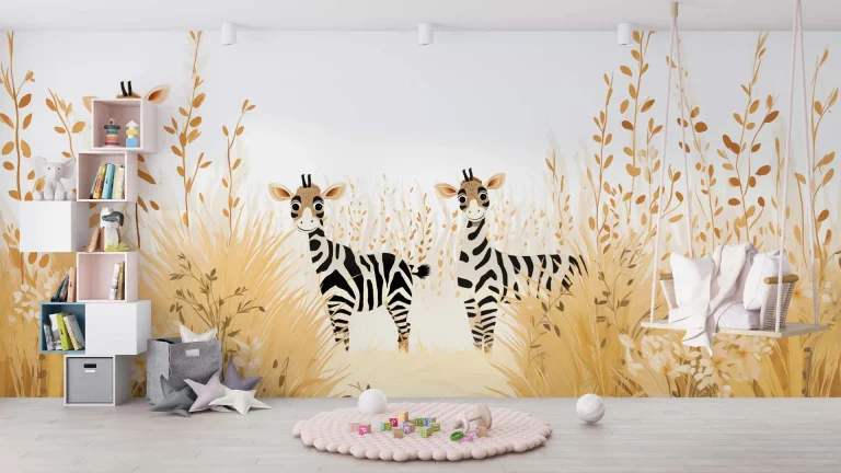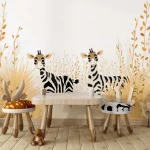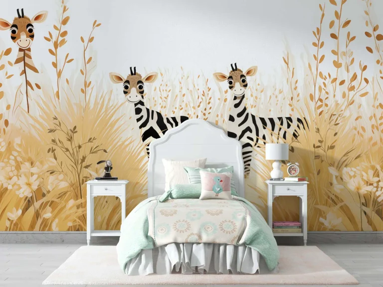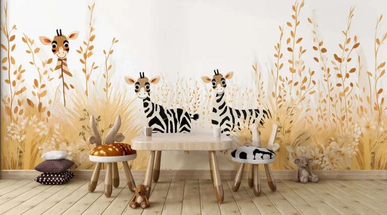 Cute Giraffe and Zebra Illustration Wallpaper – Perfect for Creating a Fun and Playful Atmosphere in Kids’ Rooms and Nurseries