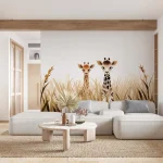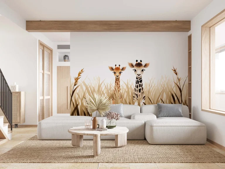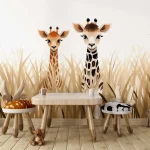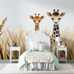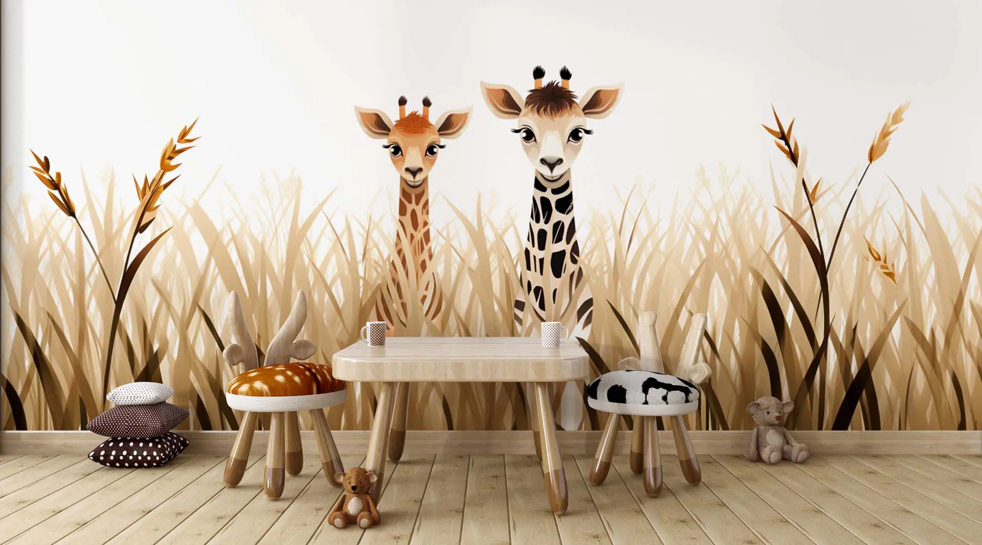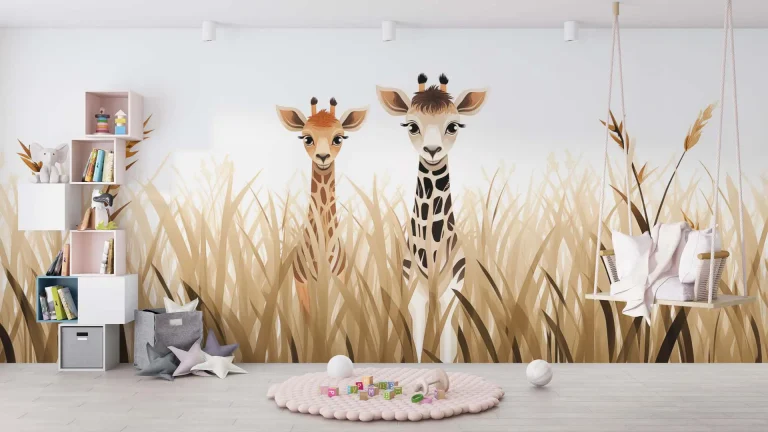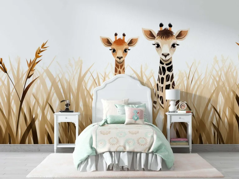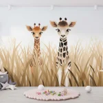 Cute Giraffes in the Grass Wallpaper – Adorable Safari Wall Design for Kids’ Rooms, Nurseries, or Playrooms
