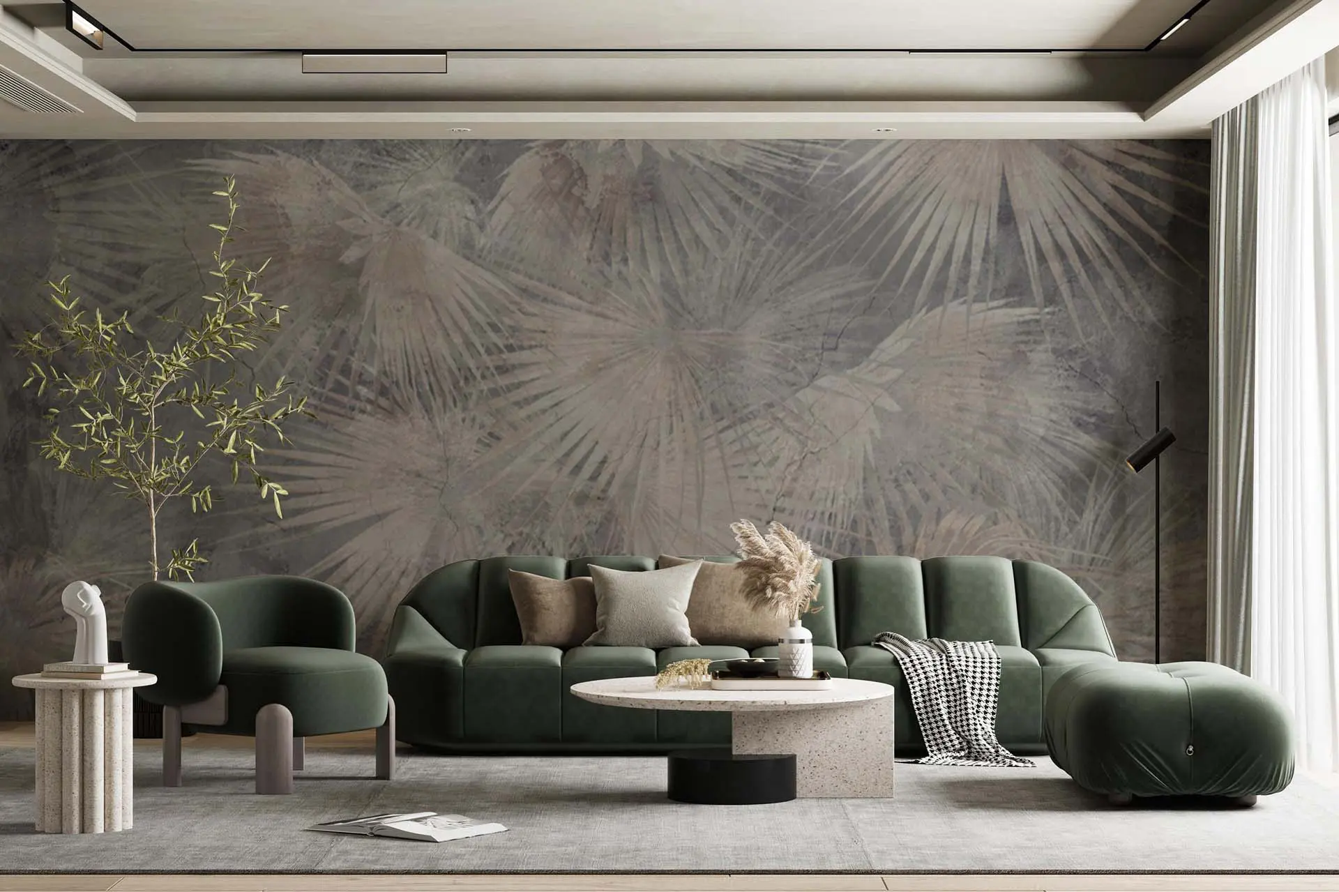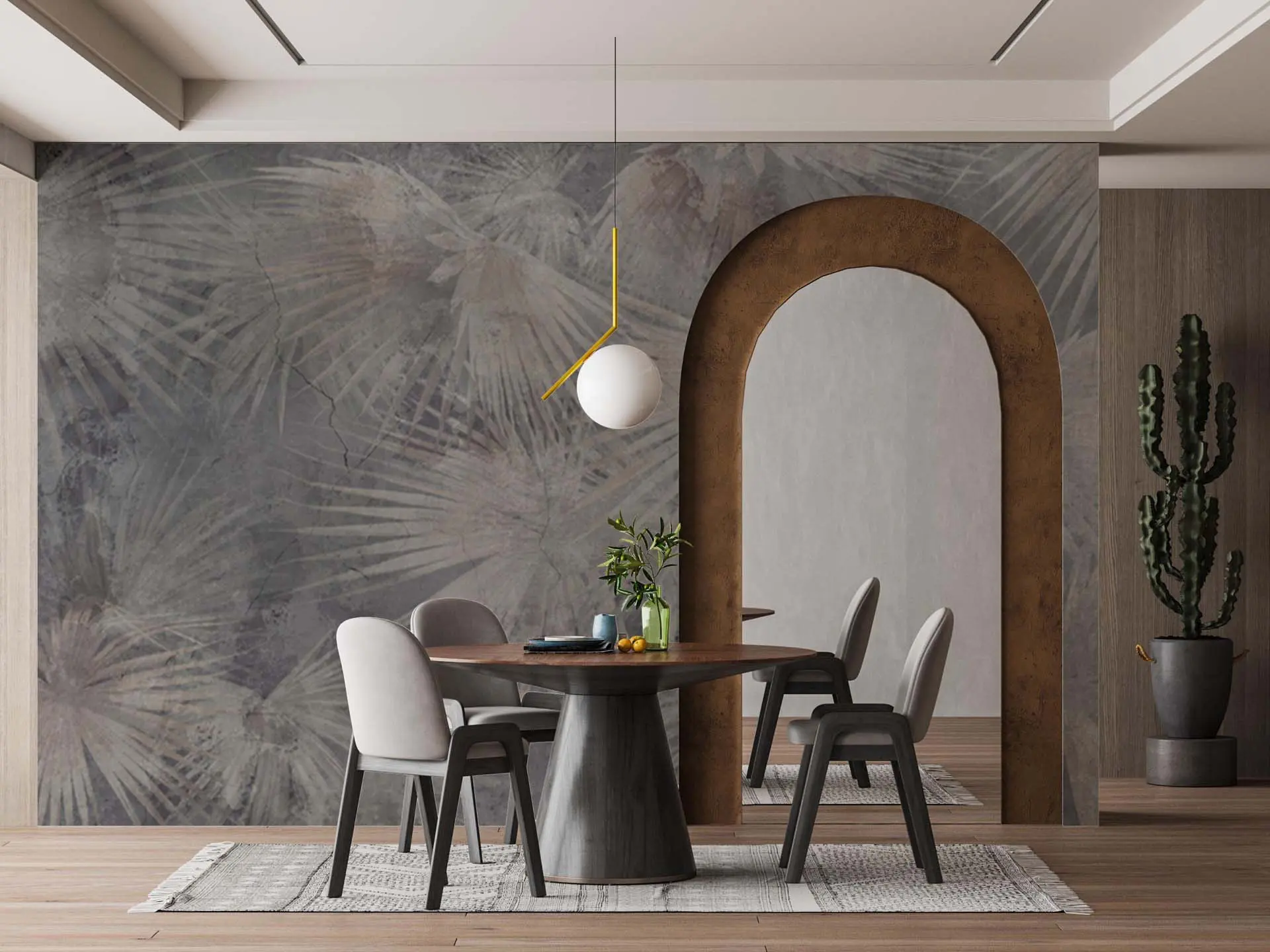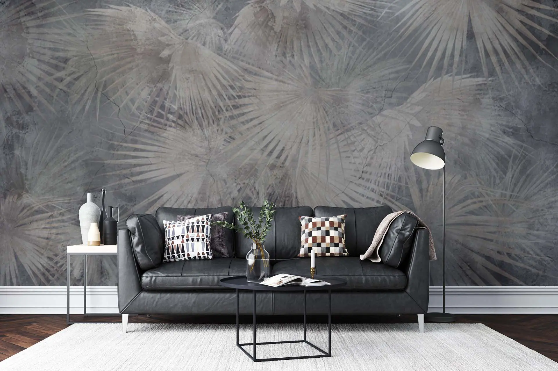 Dark and Grey Tropical Leaf Pattern Wallpaper – Artistic, Modern, and Chic Design for Stylish Decor