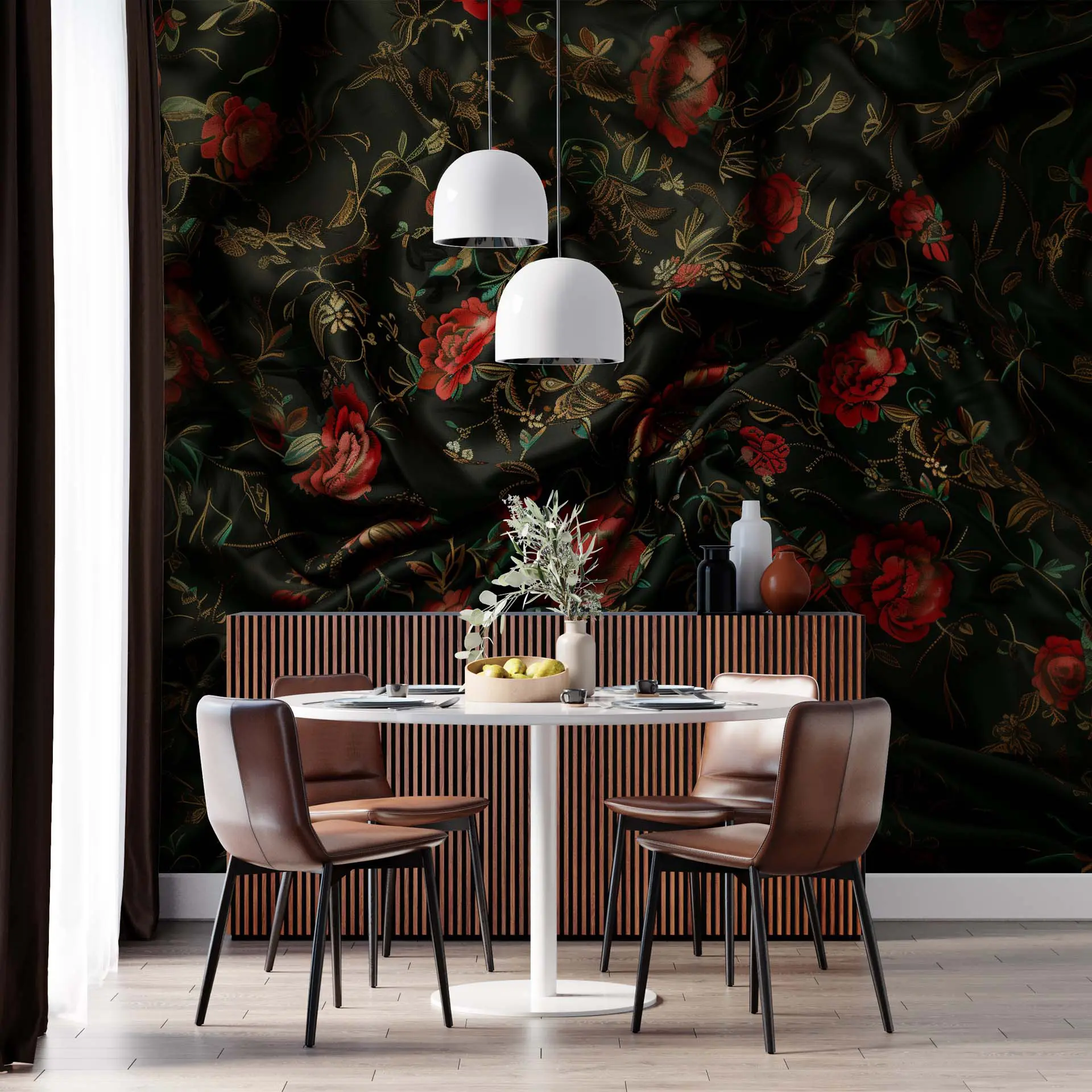 Dark Floral Wallpaper for Dramatic and Luxurious Interiors – Perfect for Bedrooms, Living Rooms, and Creative Spaces