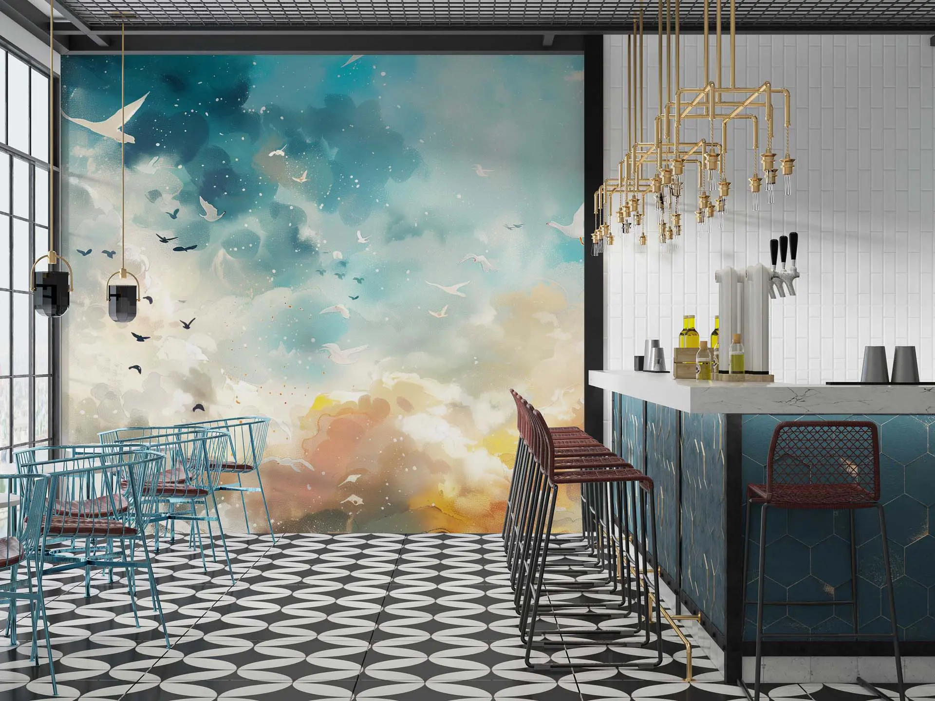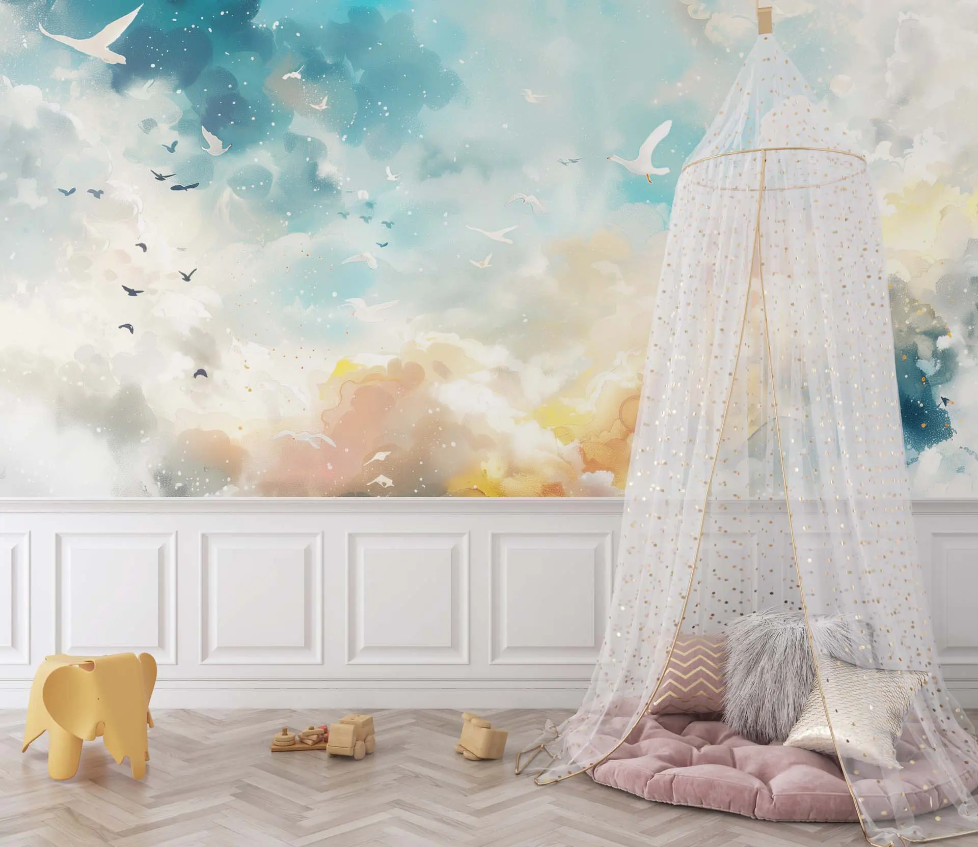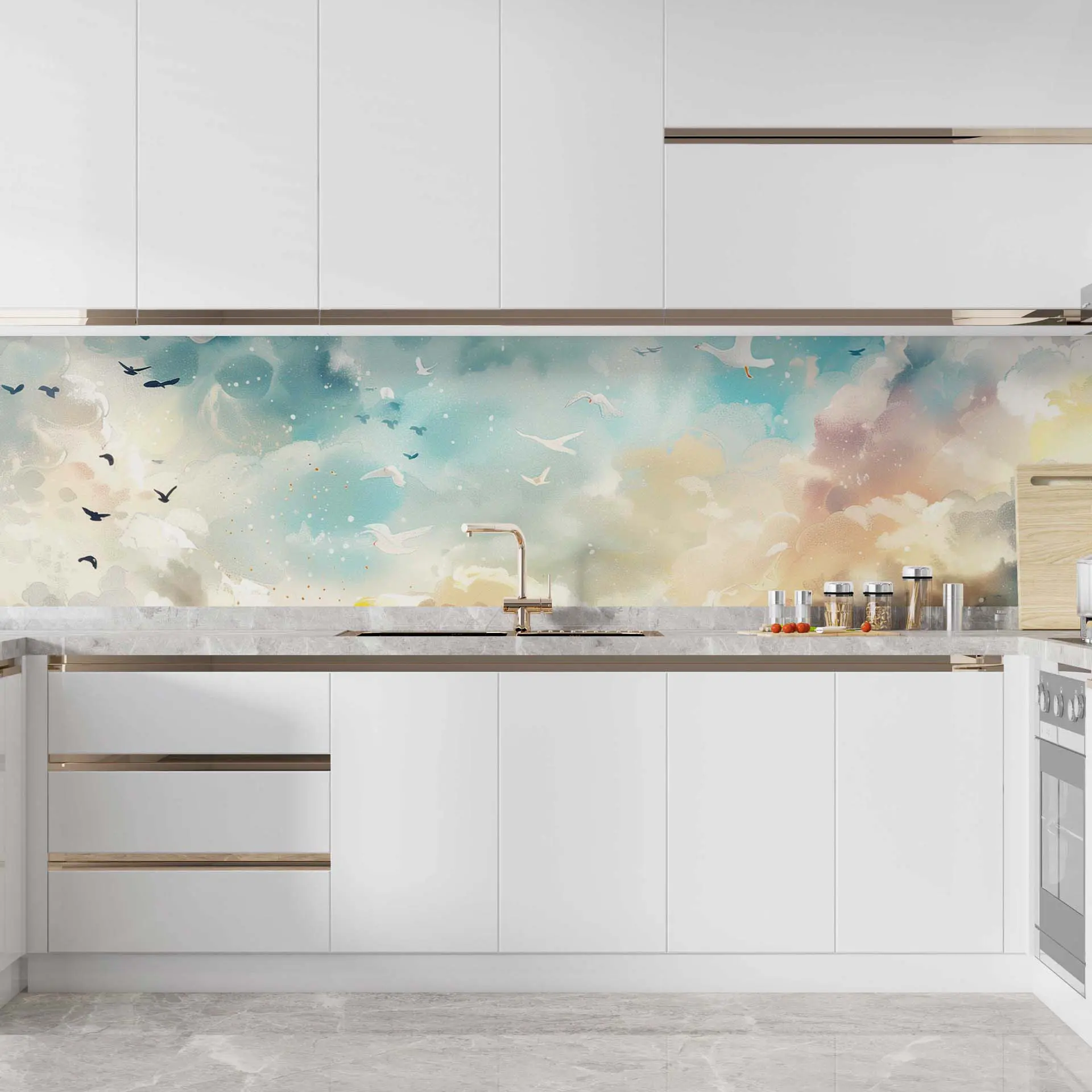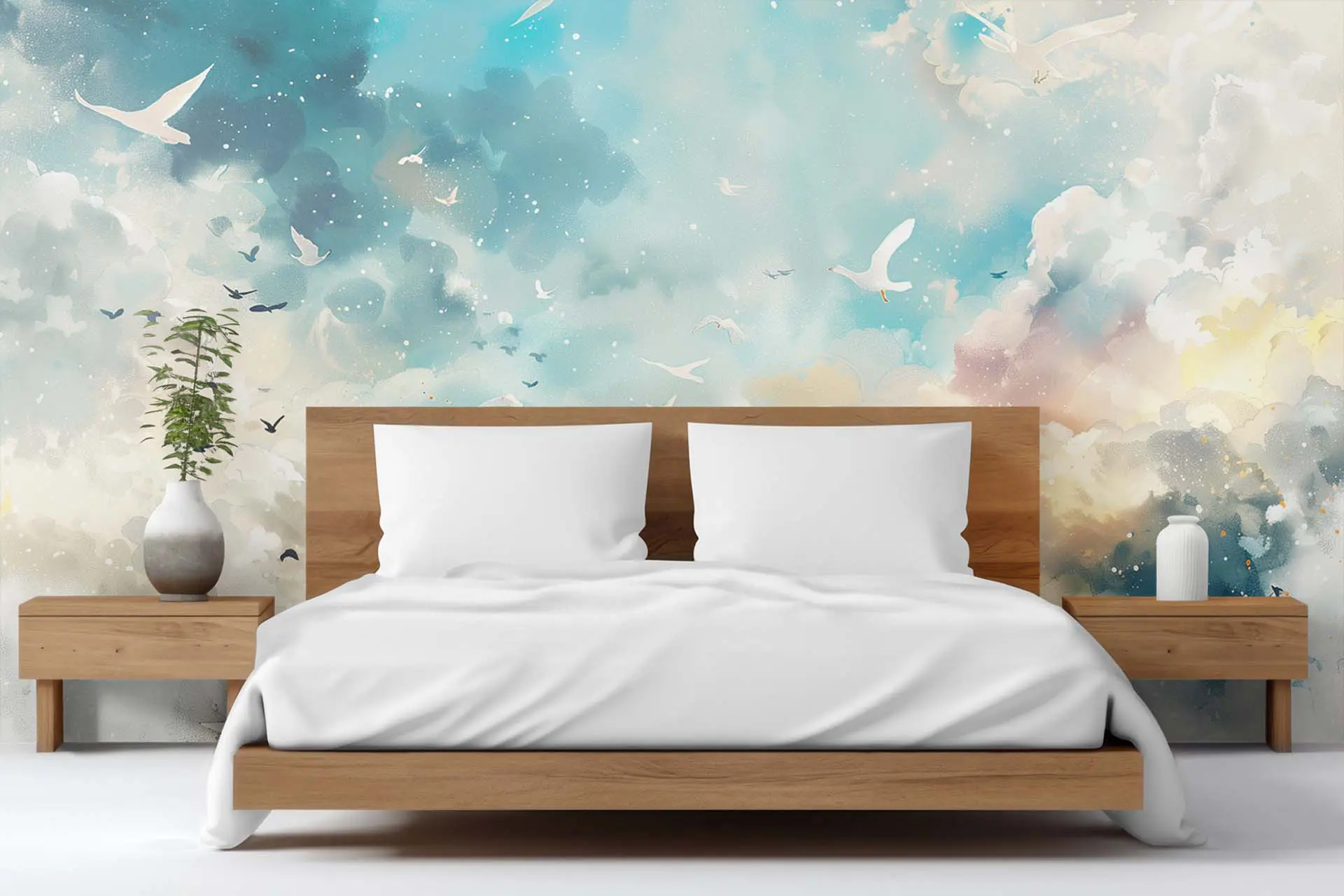 Dreamy Sky and Birds Wallpaper – Perfect for Creating a Serene and Relaxing Ambiance in Any Room
