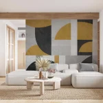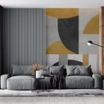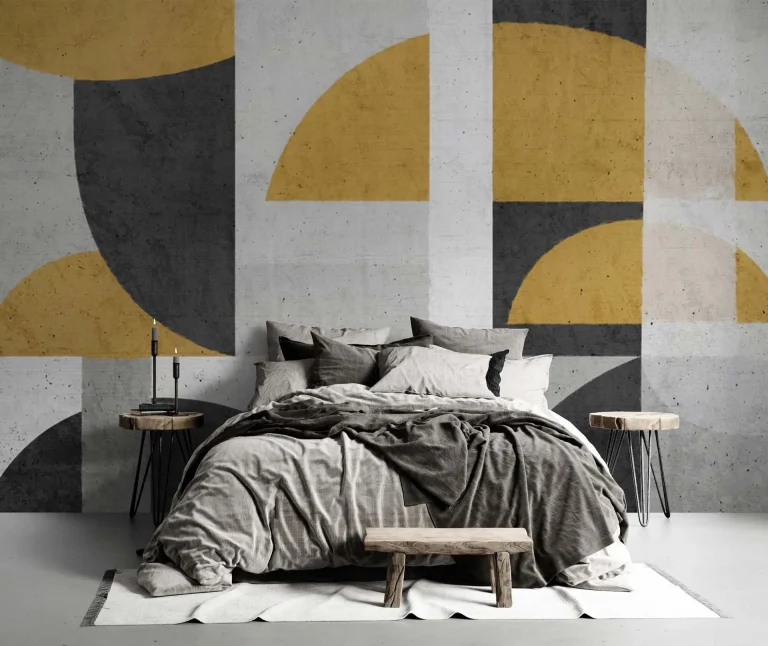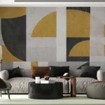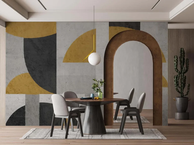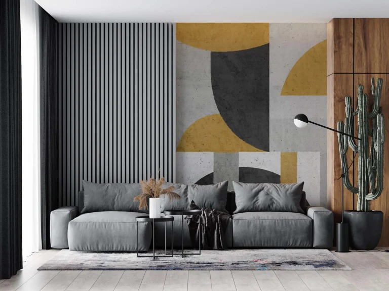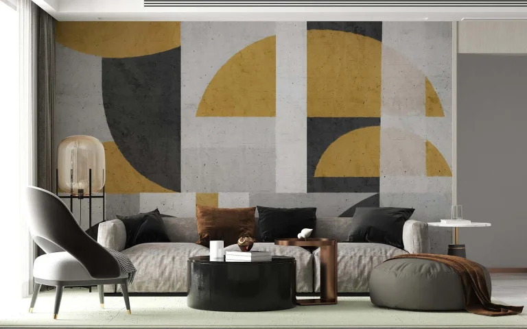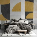 Elegant Geometric Wallpaper in Gold, Grey, & Black – Modern Artistic Patterns for Stylish Wall Decor