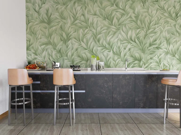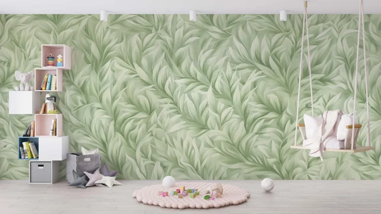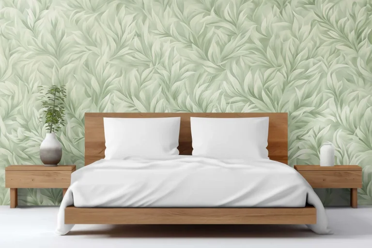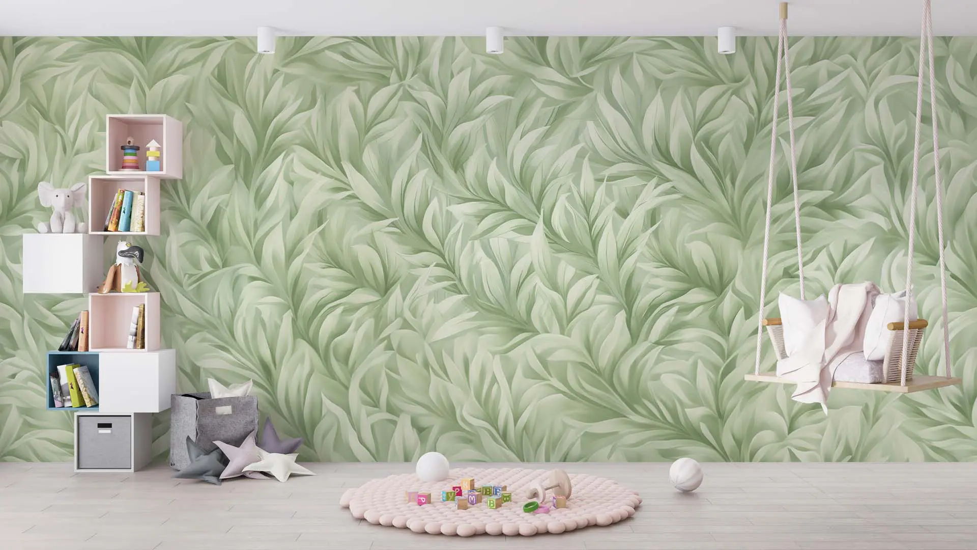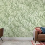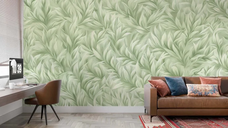 Elegant Leaf Pattern Wallpaper in Soft Green – Ideal for Creating a Calm and Natural Atmosphere in Any Space