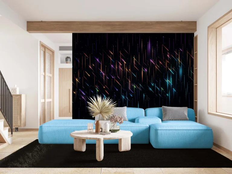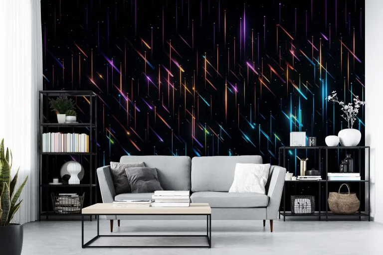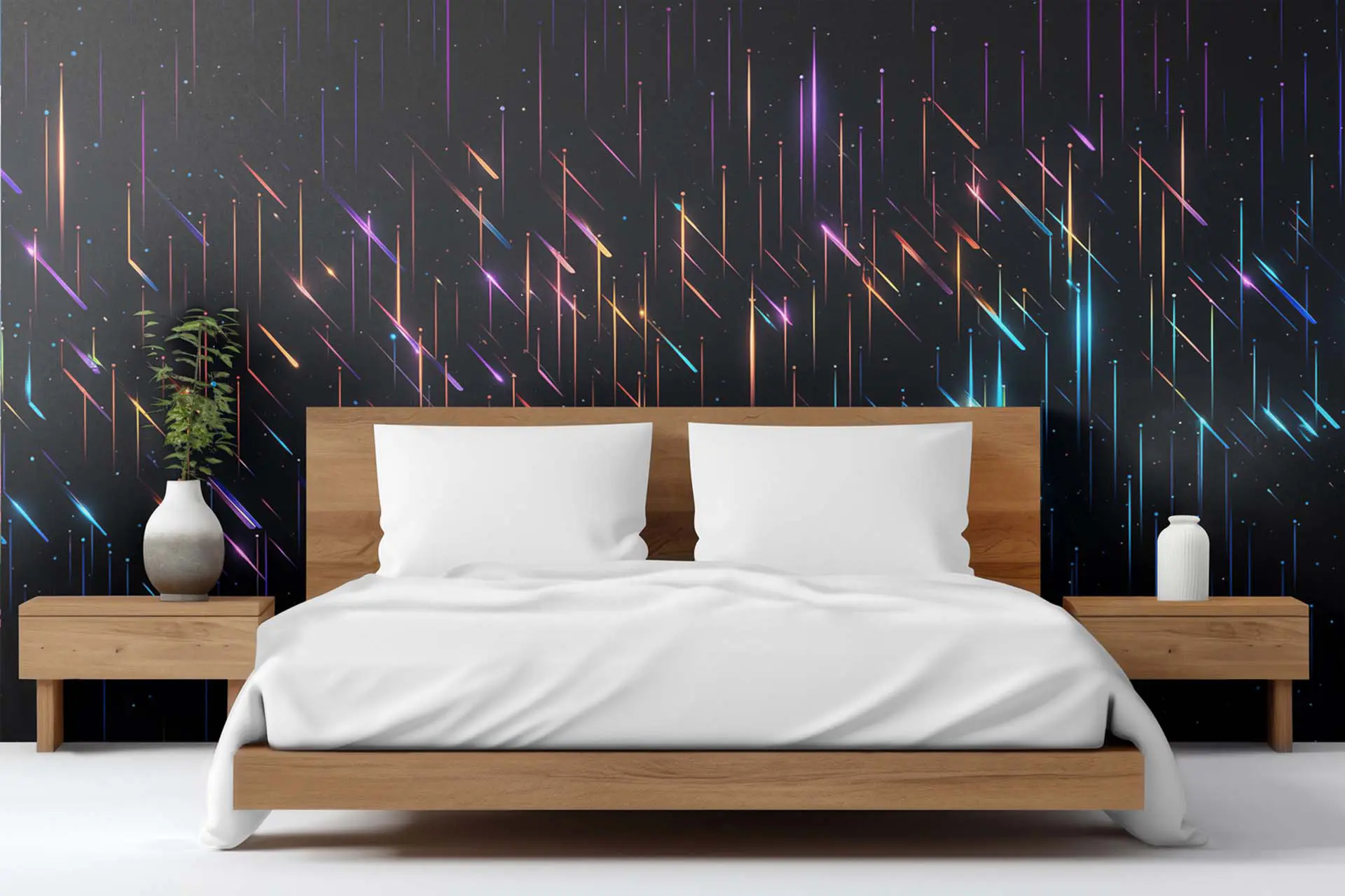 Futuristic Neon Light Streaks Wallpaper – Perfect for Adding a Vibrant and Cosmic Touch to Modern Interior Spaces