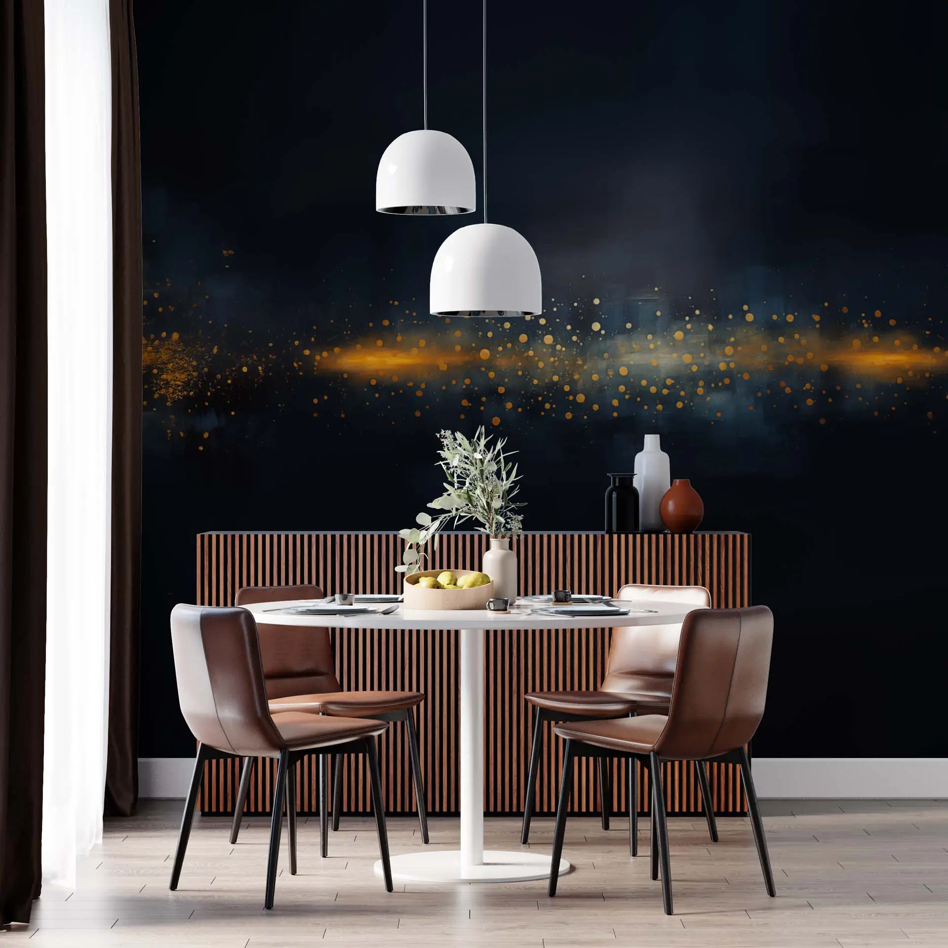 Golden Sparkles on Dark Background Wallpaper – Elegant and Luxurious Wall Design for Living Rooms or Offices