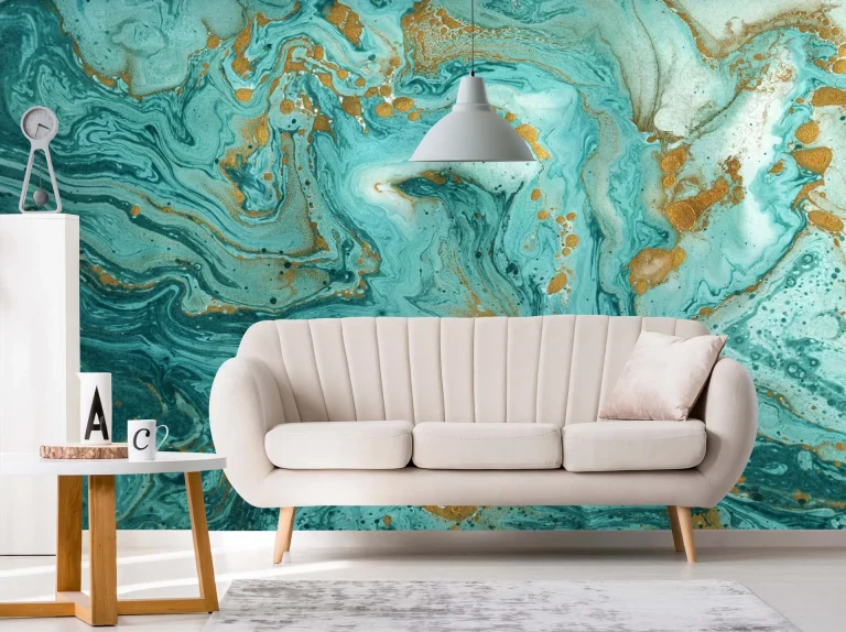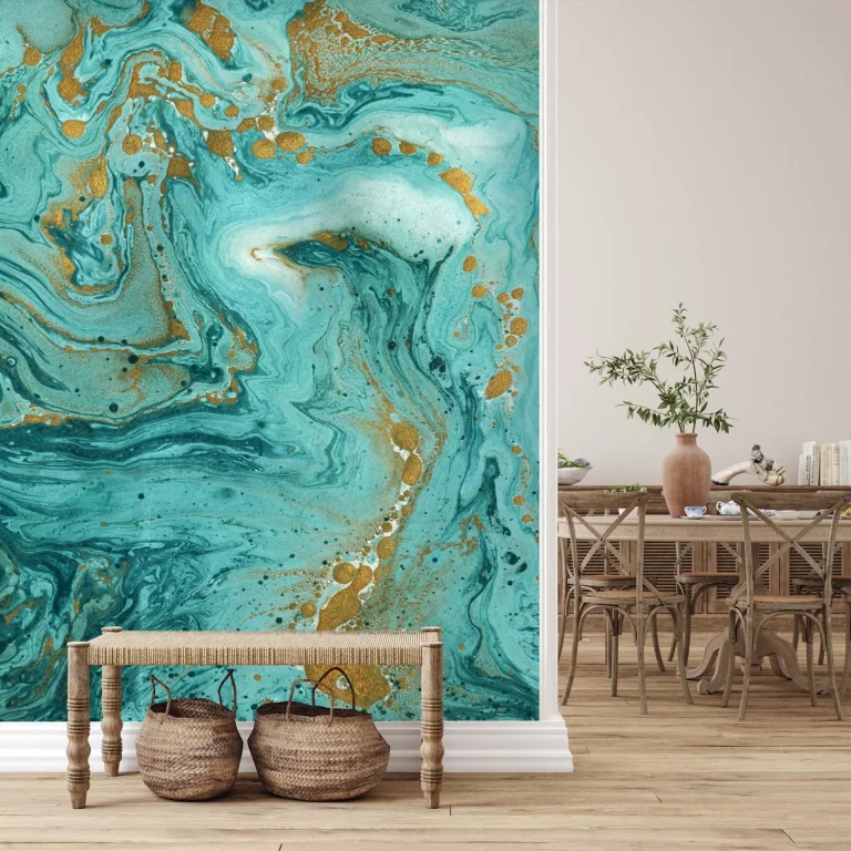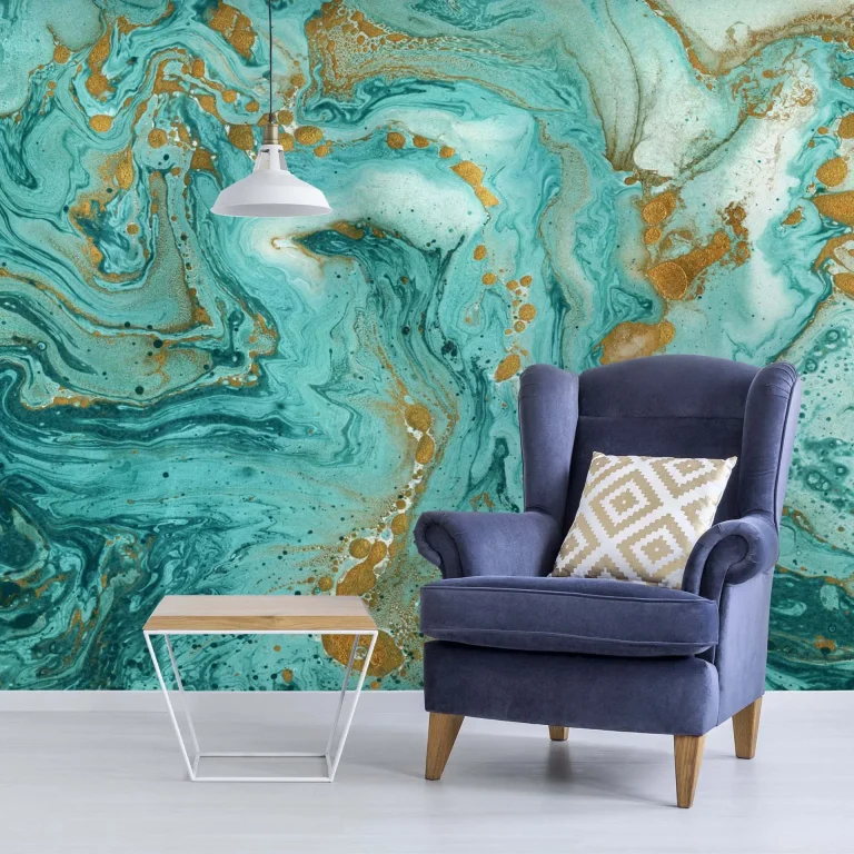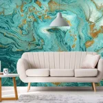 Green Marble Pattern with Gold Veins Wallpaper – Abstract, Artistic, Stylish for Modern Decor