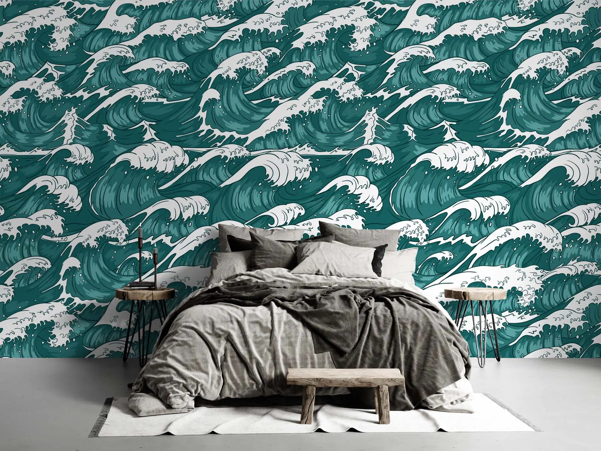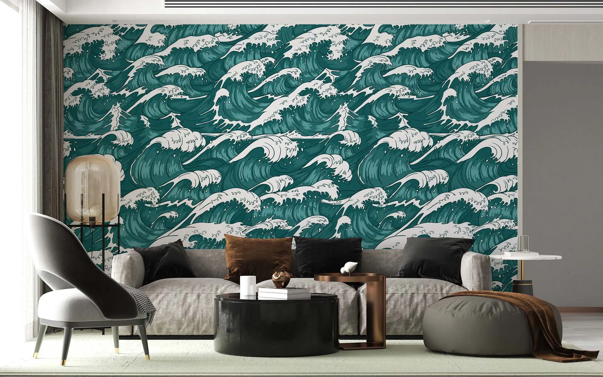 Japanese Style Foamy Giant Waves Wallpaper – Artistic Oceanic Wall Decor for Thematic Interiors