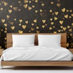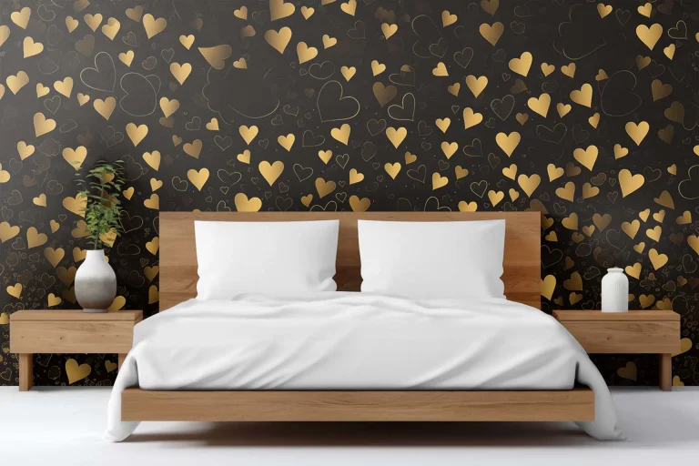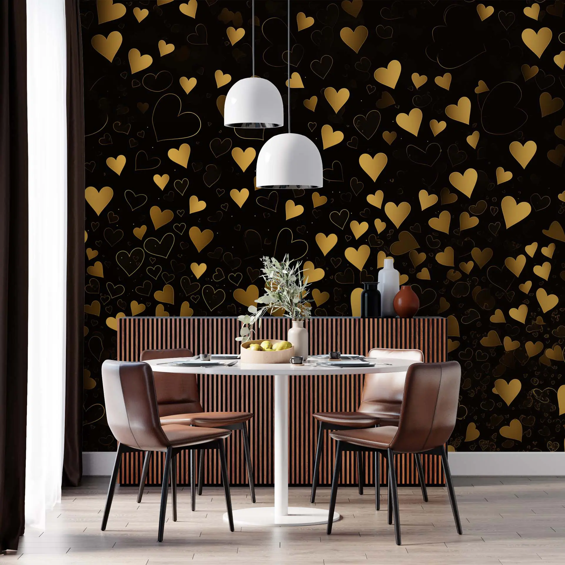 Luxurious Gold Hearts on Black Wallpaper – Romantic and Elegant Wall Design for Living Rooms or Bedrooms