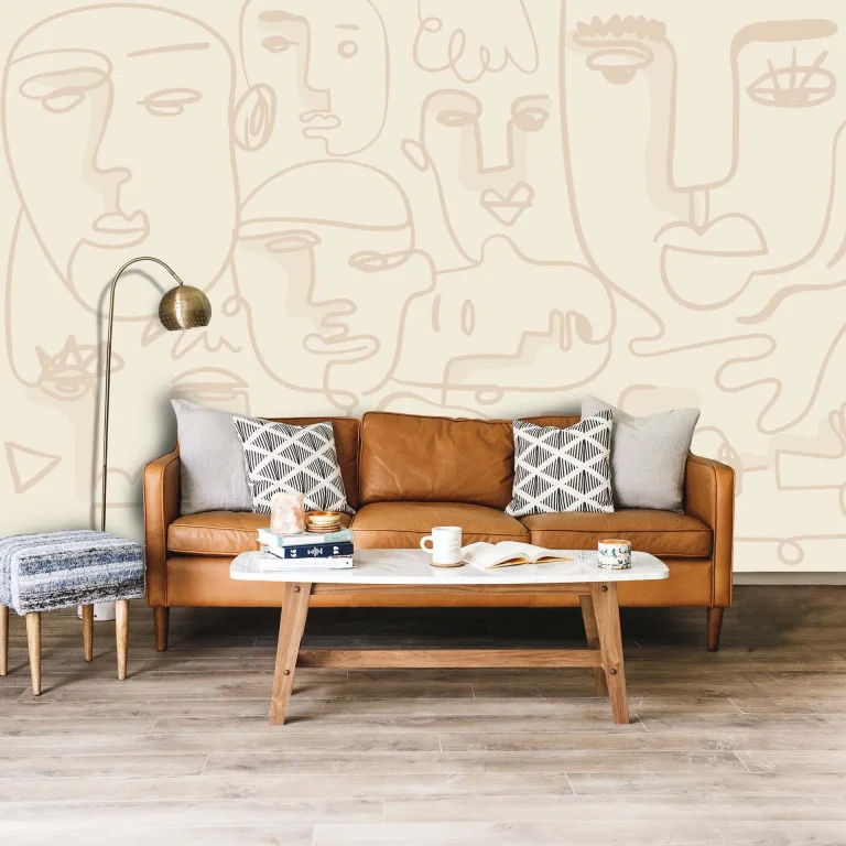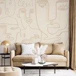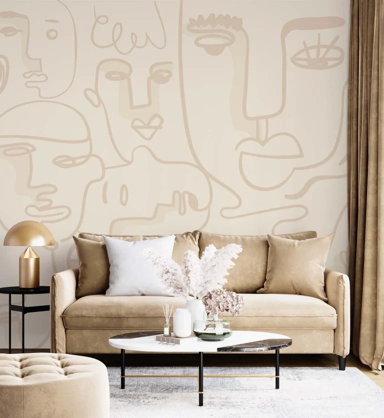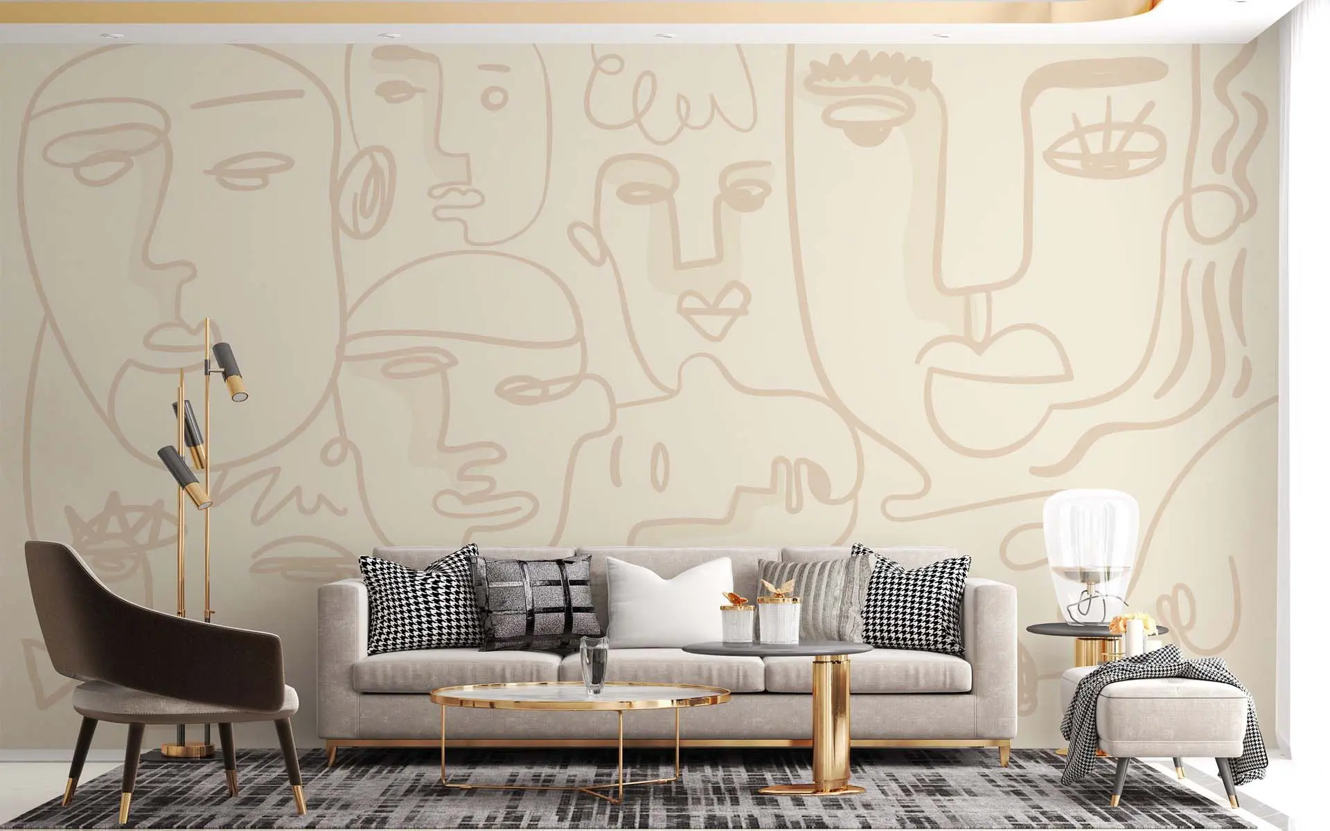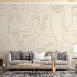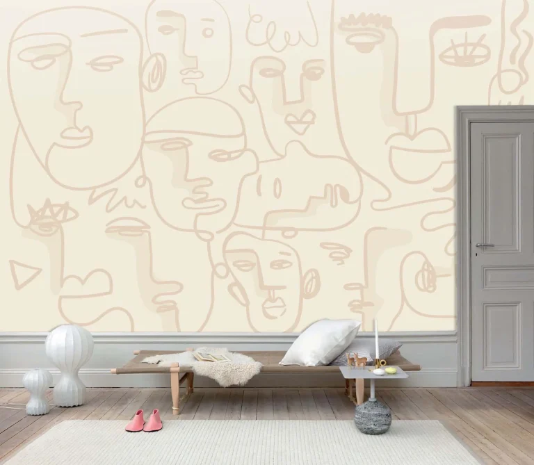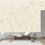 Minimalist Abstract Face Wallpaper on Cream Background – Artistic and Contemporary Decor