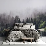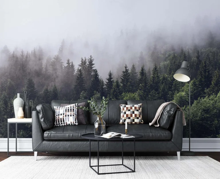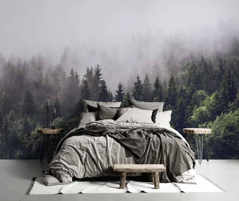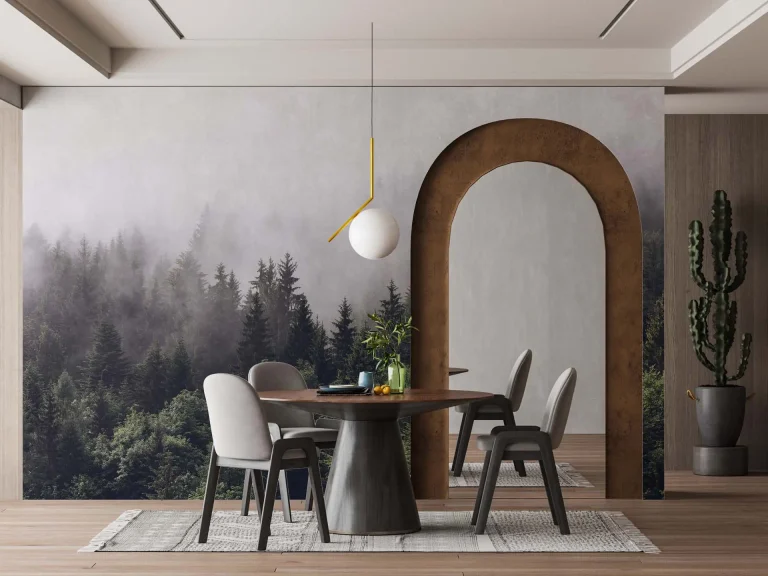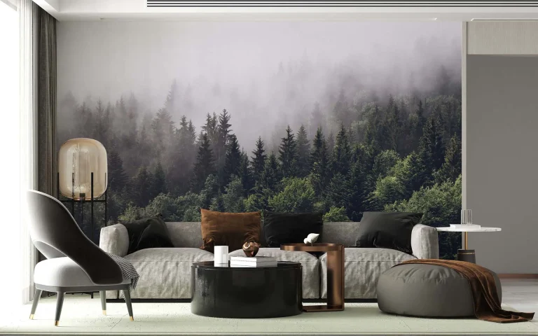 Misty Forest Wallpaper – Multi-Layered Botanical Scenery for a Nature-Inspired Decor