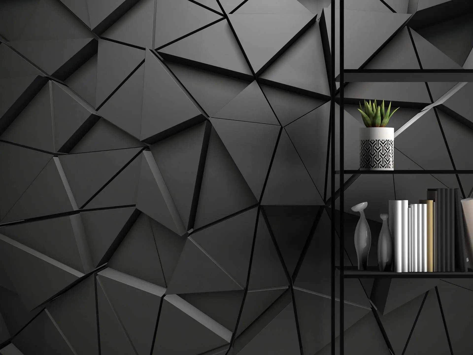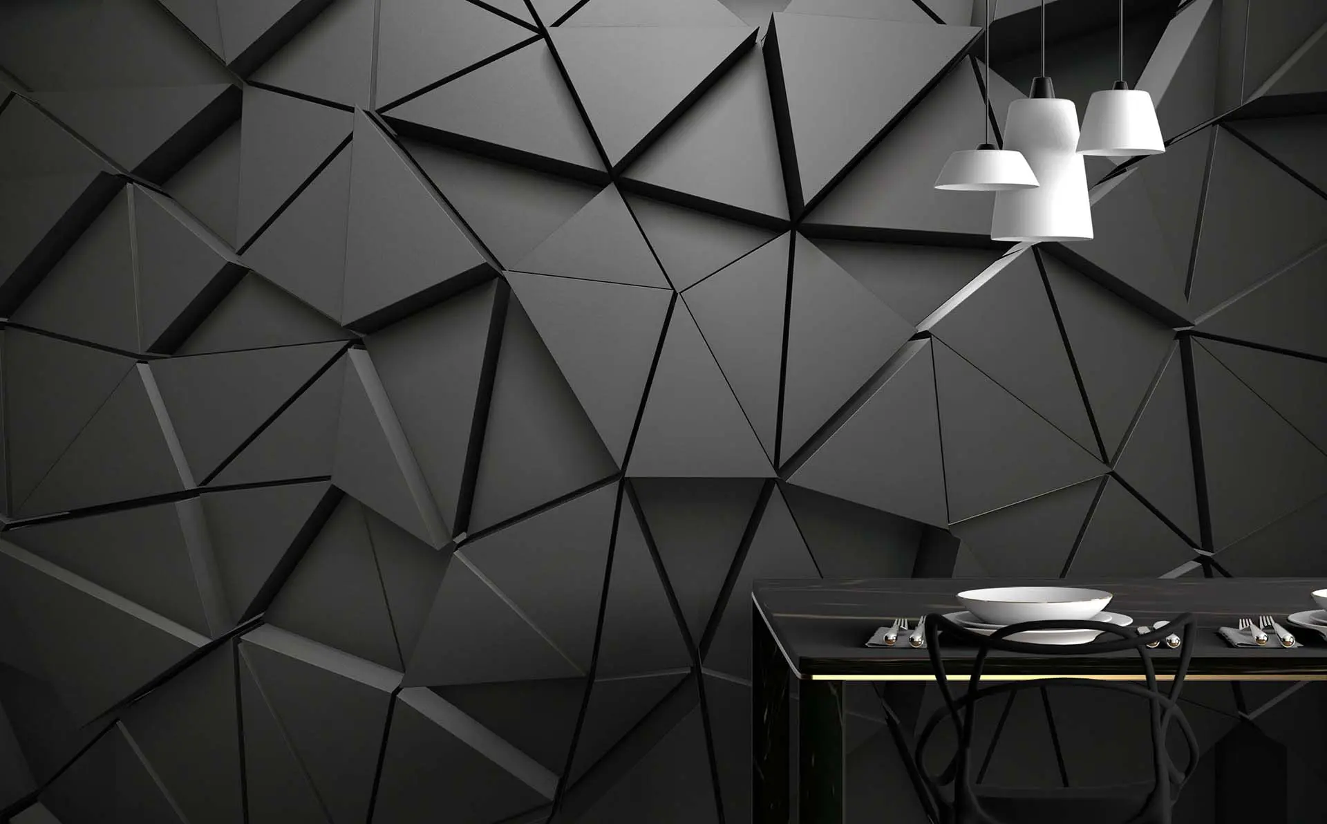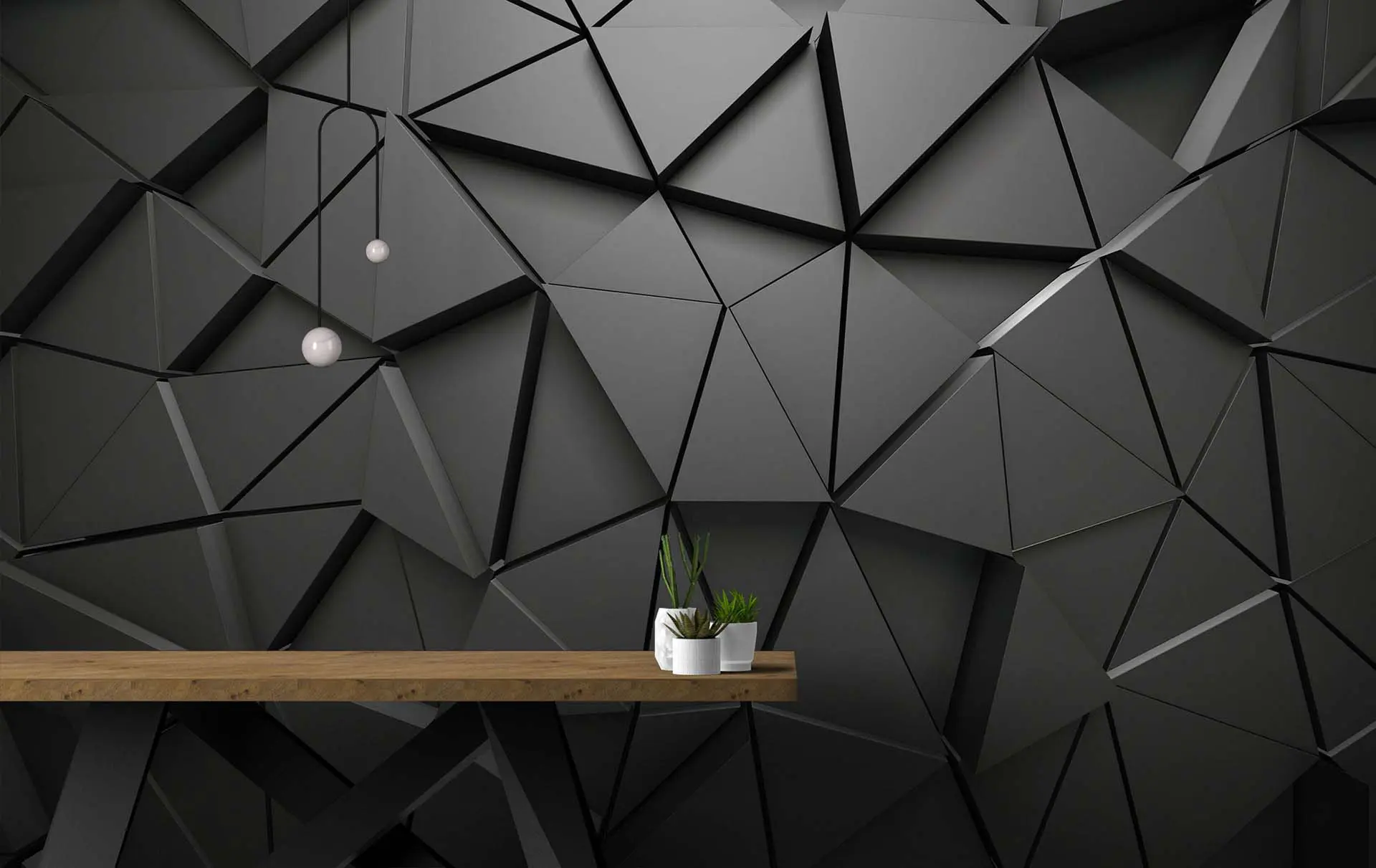 Modern Black & Grey Geometric 3D Wallpaper – Sleek Triangular Block Design for Contemporary Spaces