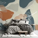 Pastel Abstract Patterns with White Branch & Leaf Drawings Wallpaper – Modern Artistic Bohemian Style Decor