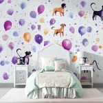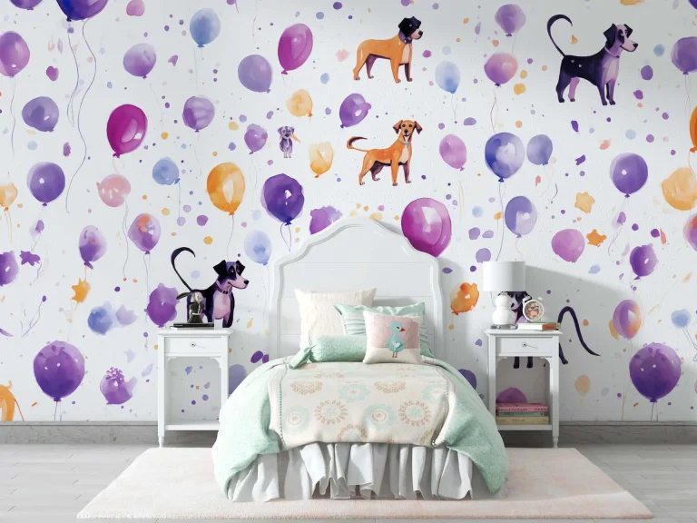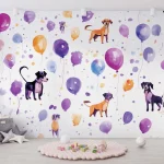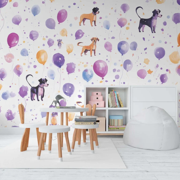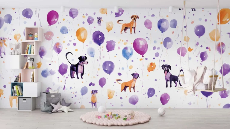 Playful Dog and Balloon Wallpaper for Fun and Colorful Interiors – Perfect for Kids’ Rooms and Play Areas