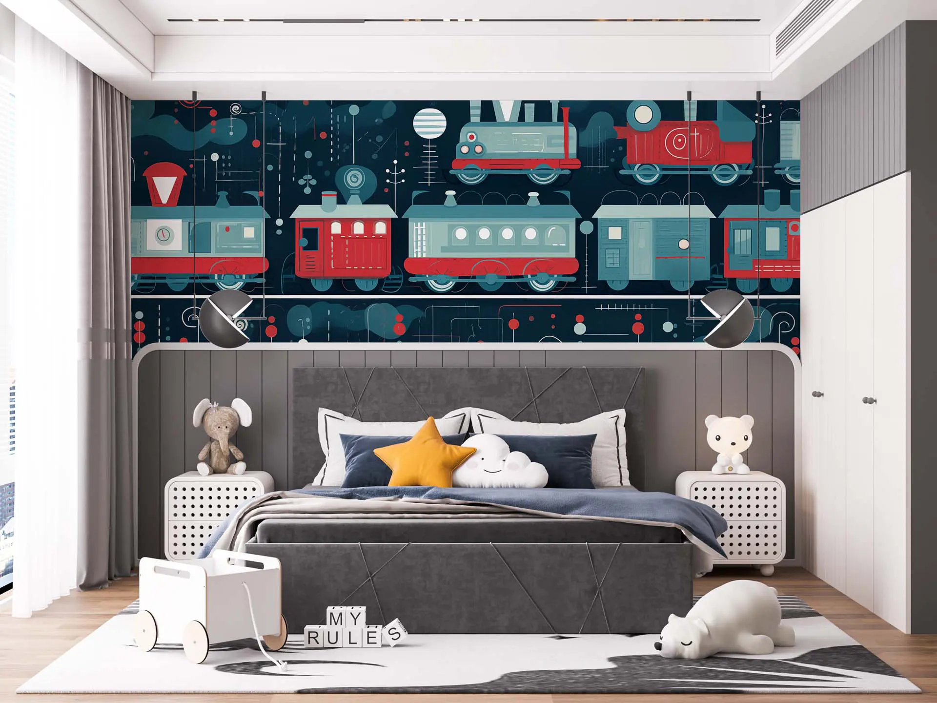 Playful Train Illustration Wallpaper – Perfect for Adding Fun and Adventure to Kids’ Rooms and Playrooms