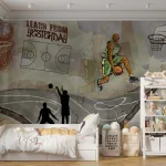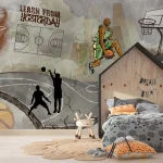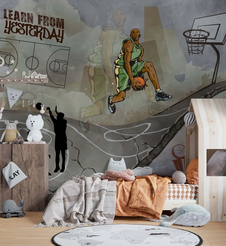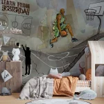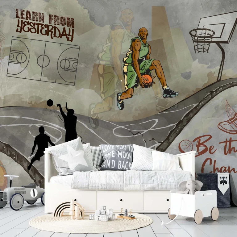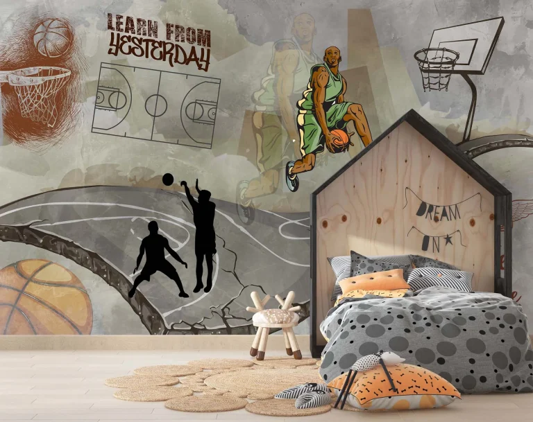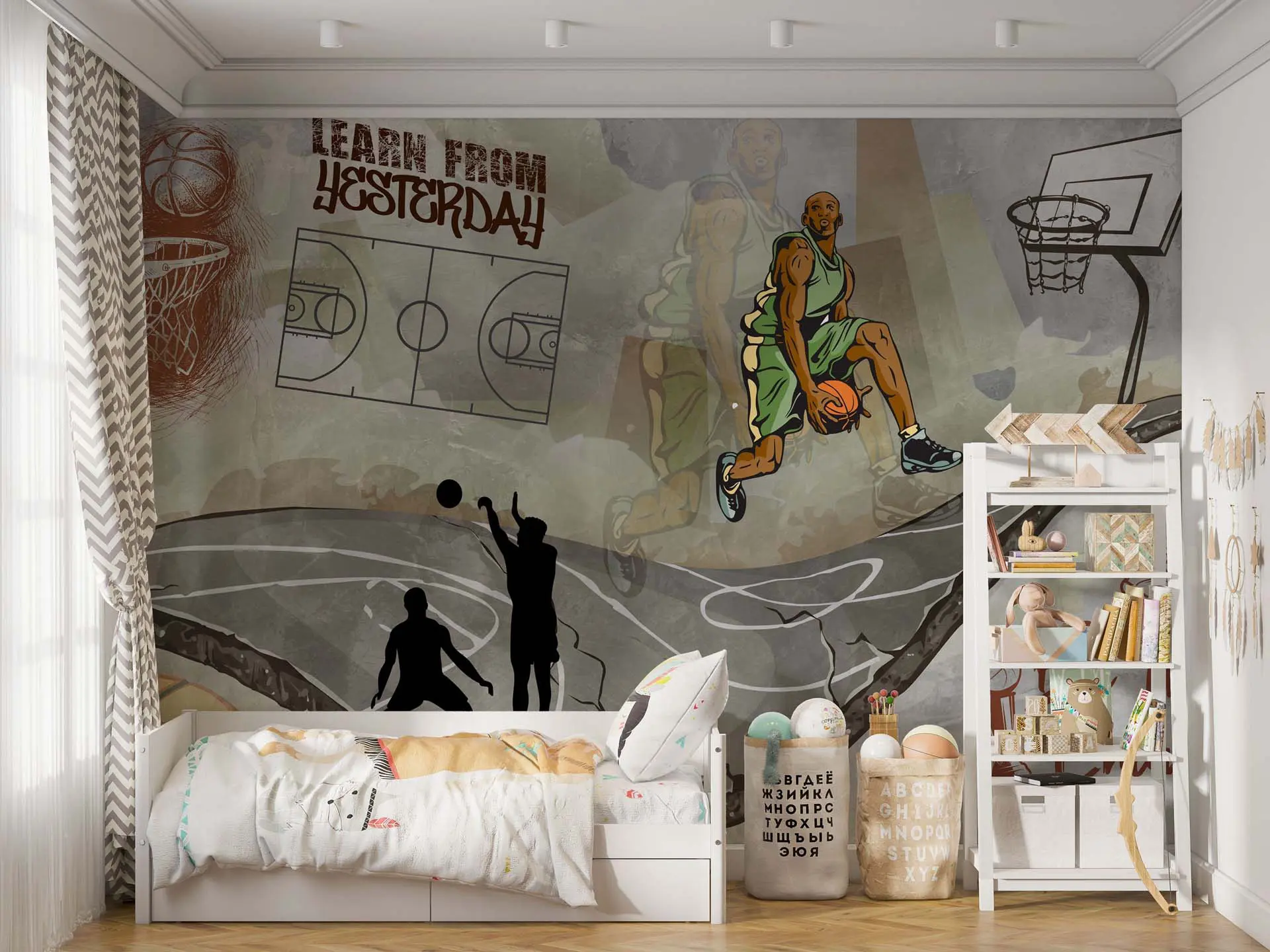 Street Basketball Court Themed Wallpaper – Urban Sporty Decor for Enthusiasts