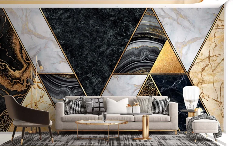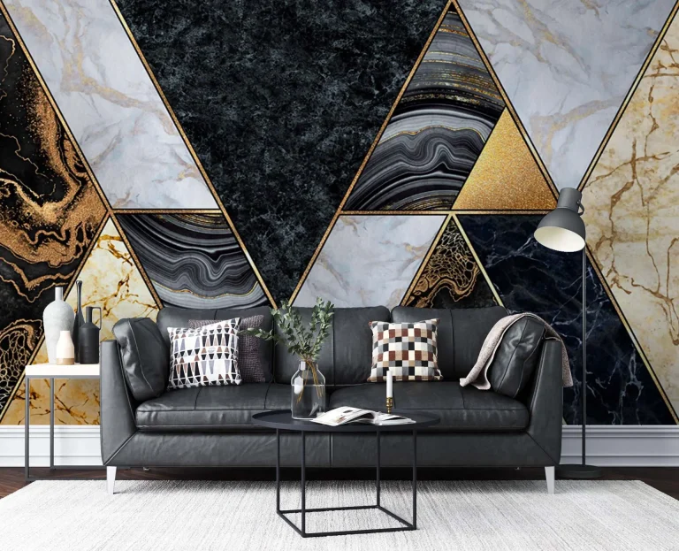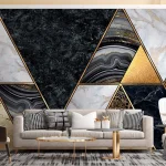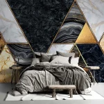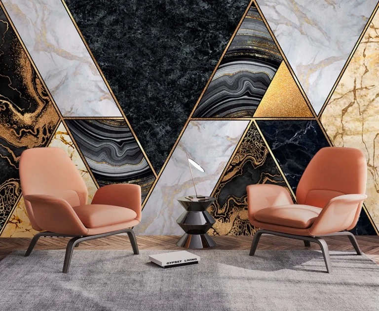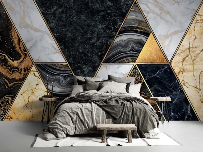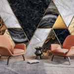 Stylish Modern Wallpaper with Geometrically Arranged Marbles in Various Patterns – Abstract & Chic Decor