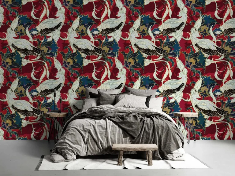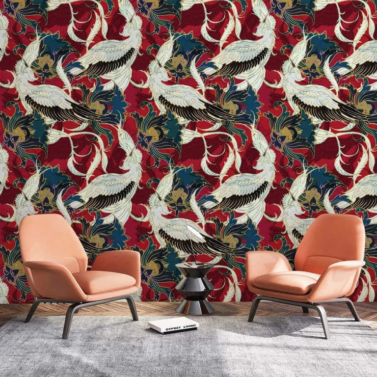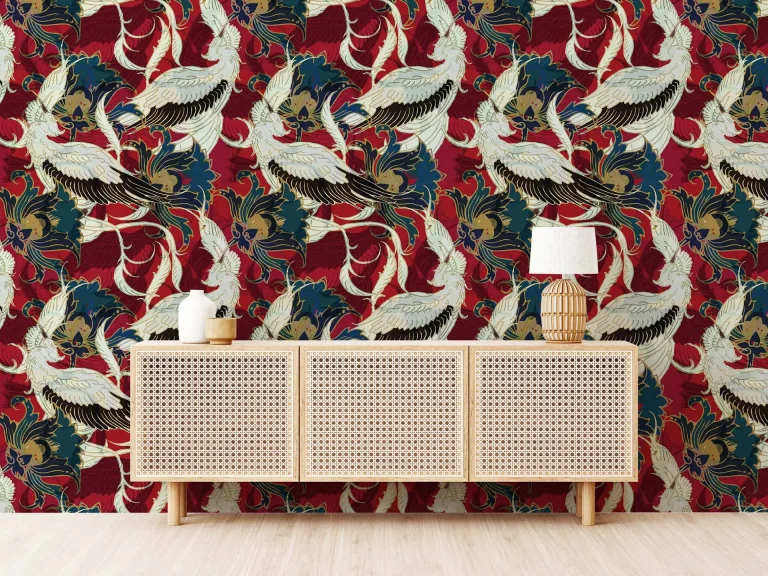 Traditional Chinoiserie Wallpaper with Red Background – Chinese Patterns for Artistic and Cultural Decor