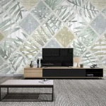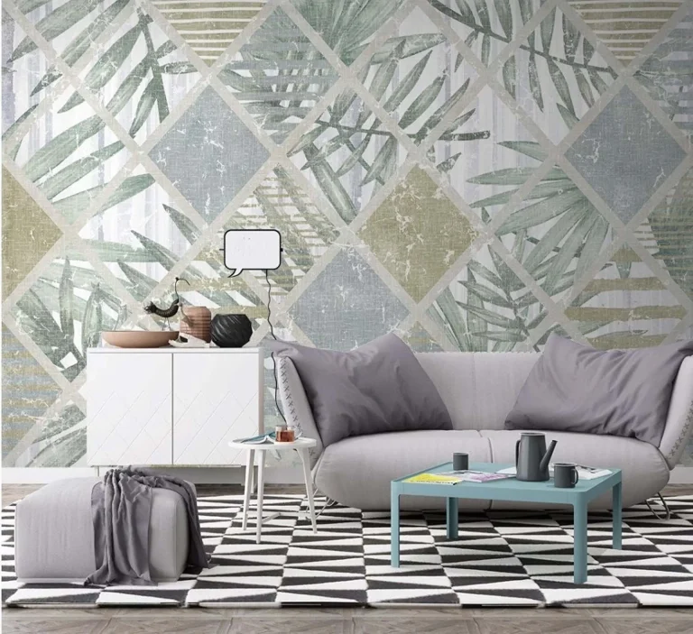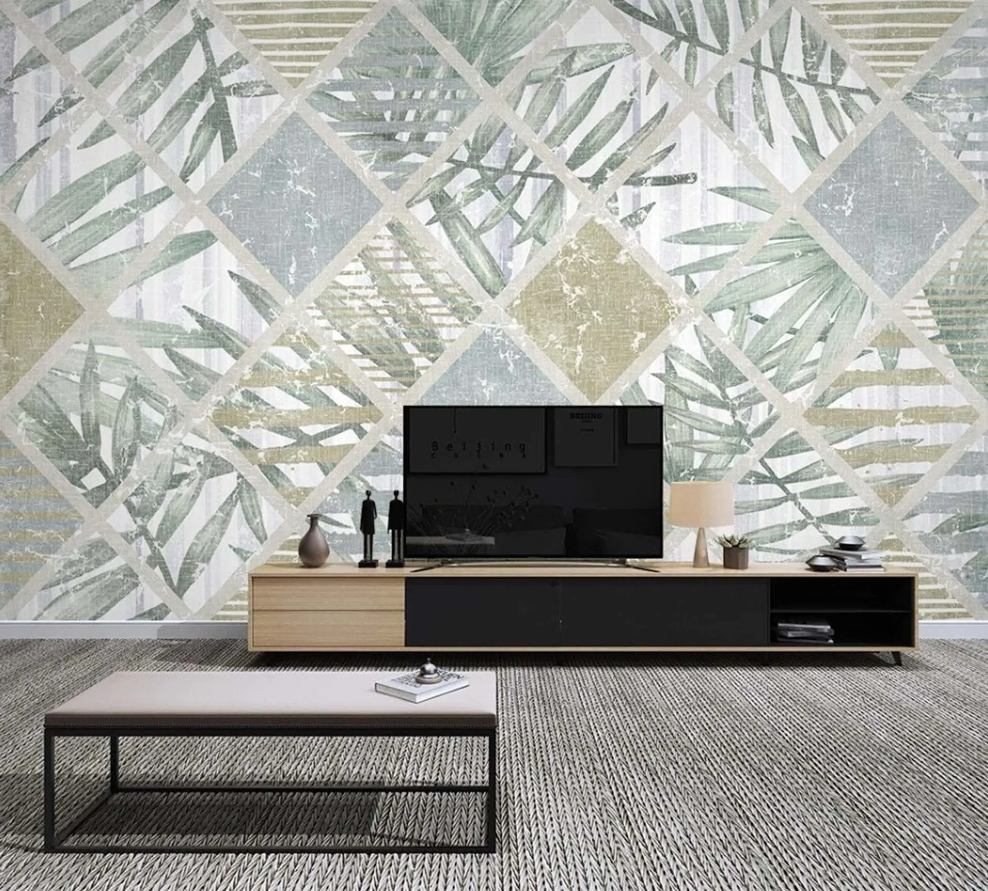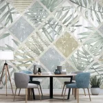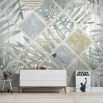 Tropical Leaf Pattern Tile Design Wallpaper in Fresh Pastel Tones – Modern and Airy Look for Contemporary Spaces